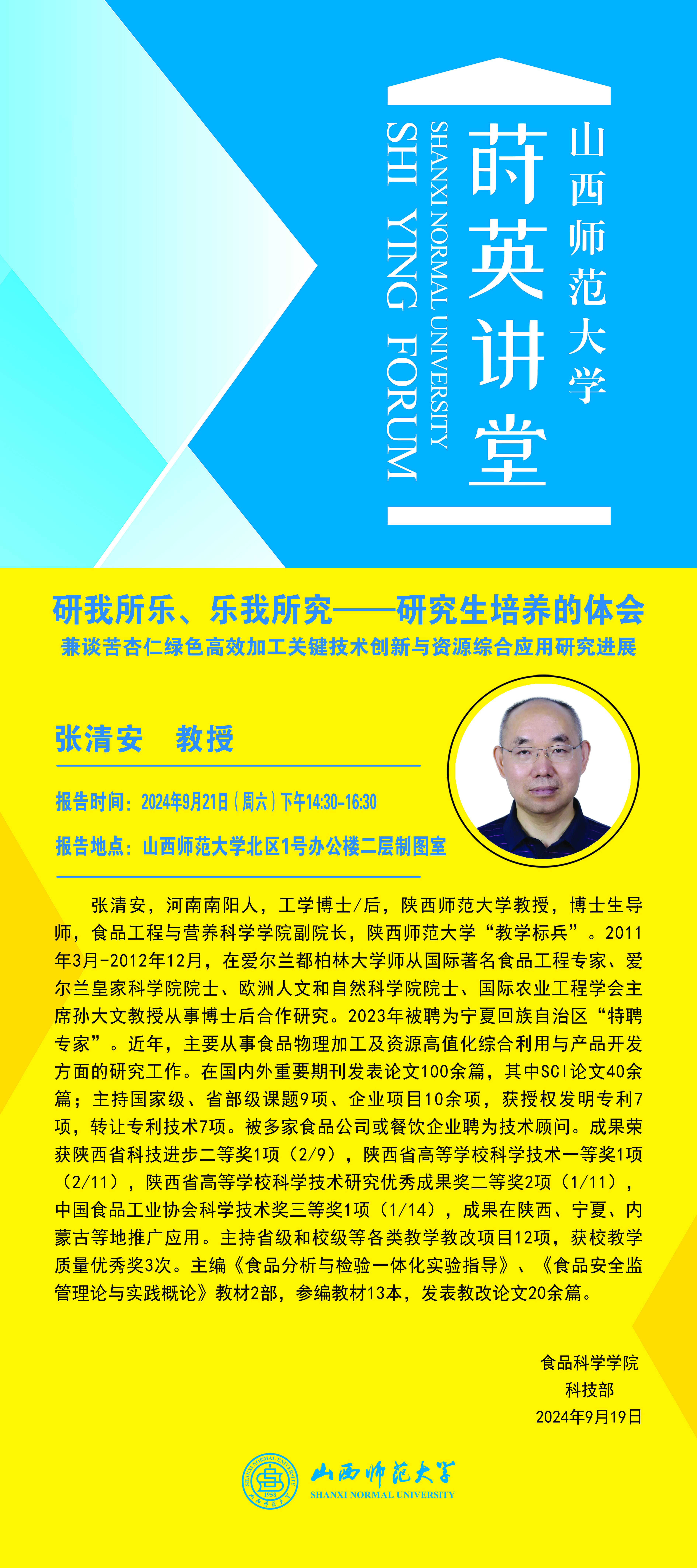 【预告】陕西师范大学张清安教授应永利官网邀请作学术报告