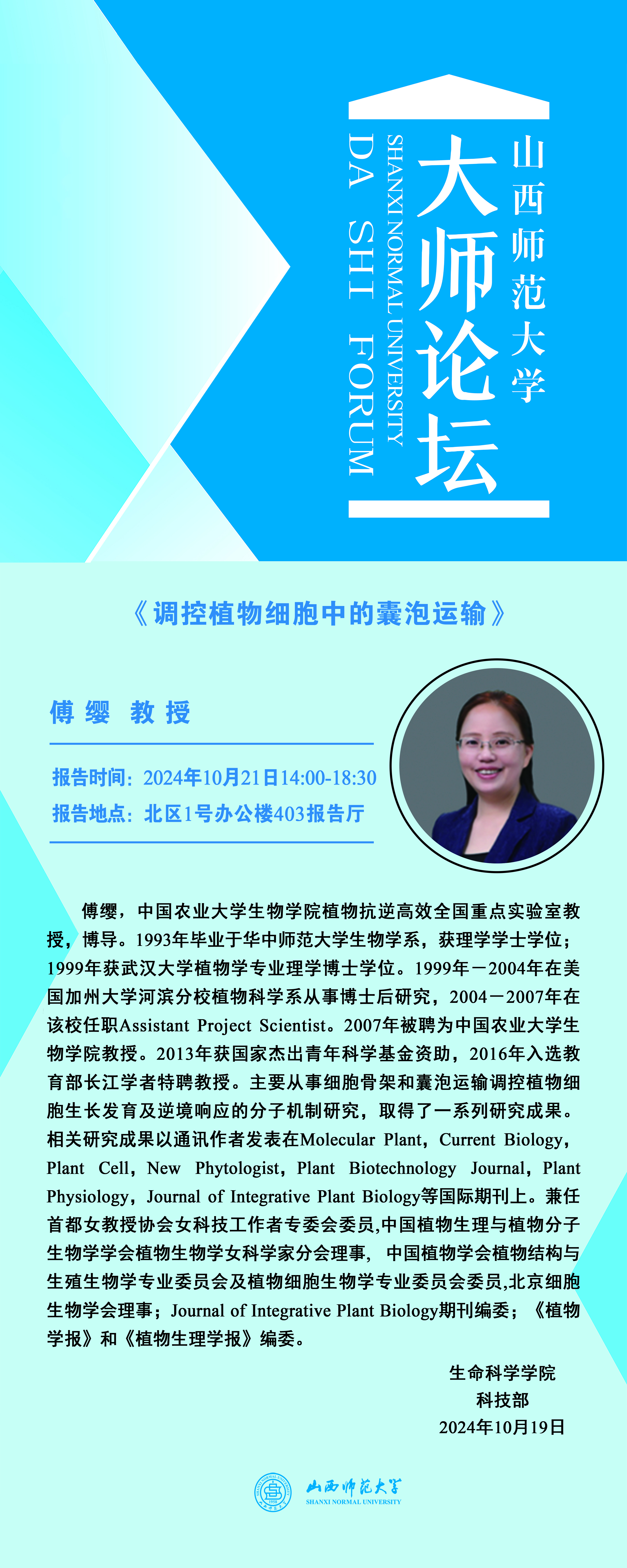 【预告】生命科学学院大师论坛系列学术报告(四)