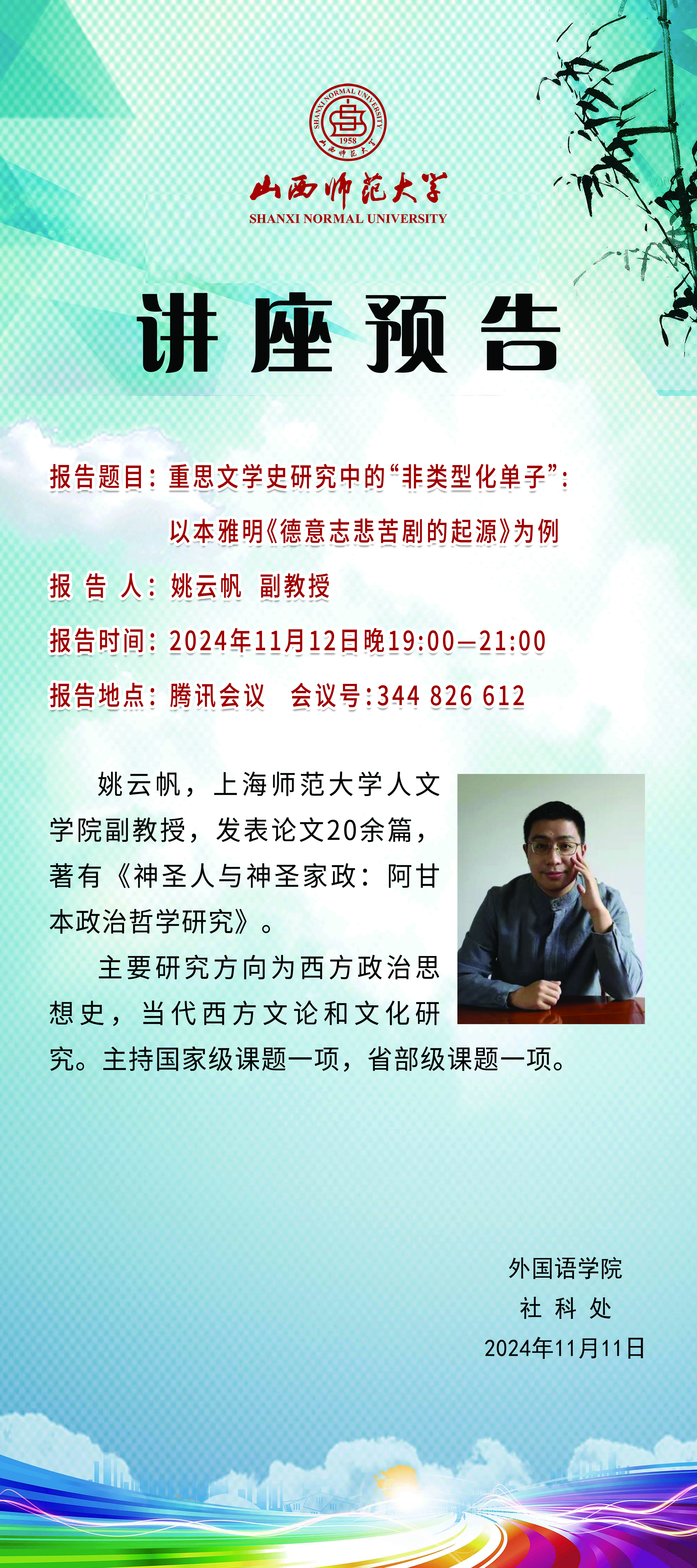 【预告】上海师范大学姚云帆副教授应外国语学院邀请作学术报告