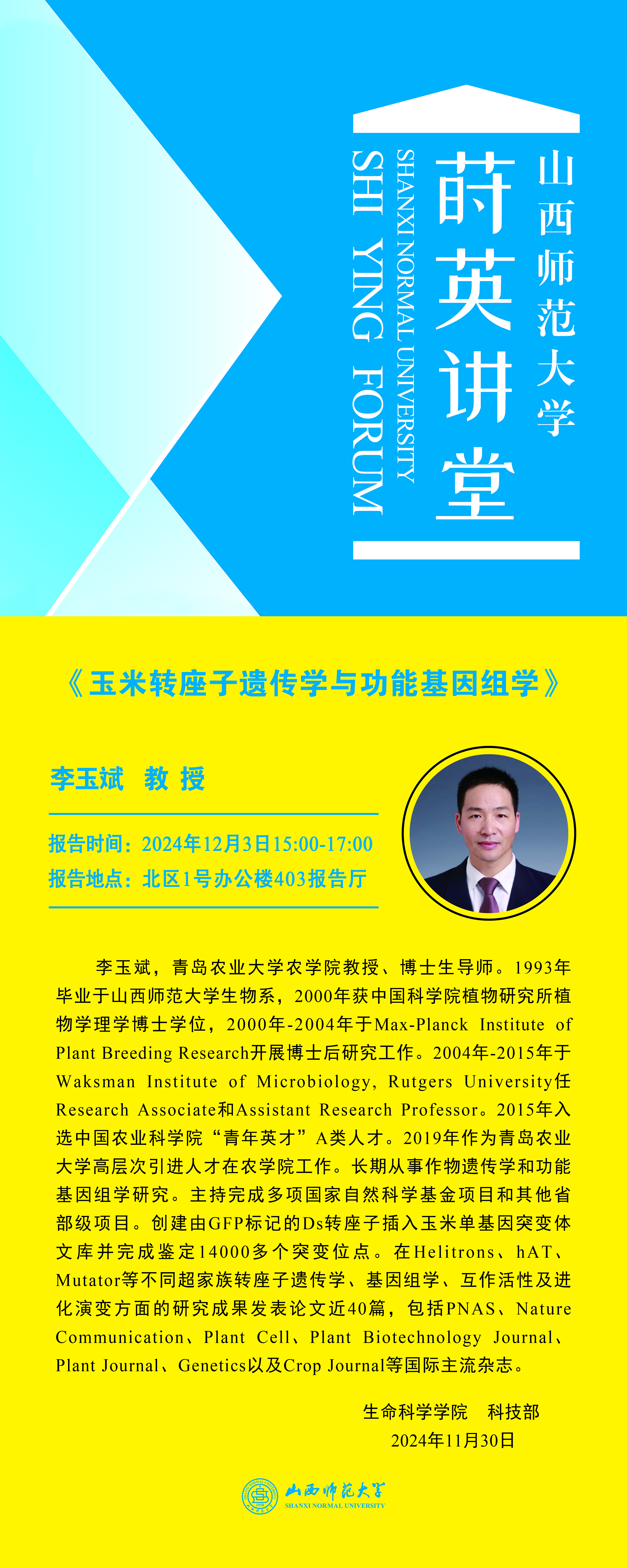 【预告】青岛农业大学李玉斌教授应永利官网邀请作学术报告