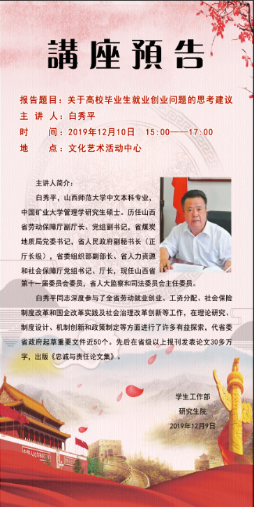 【预告】山西省人大监察和司法委员会白秀平主任应邀来永利官网作学术报告
