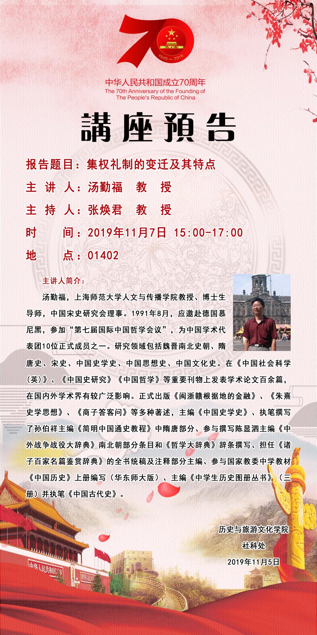 【预告】 上海师范大学汤勤福教授应历史与旅游文化学院邀请来永利官网作学术报告
