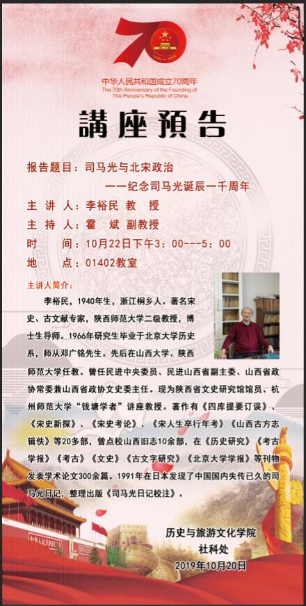【预告】陕西师范大学李裕民教授应历史与旅游文化学院邀请来永利官网作学术报告