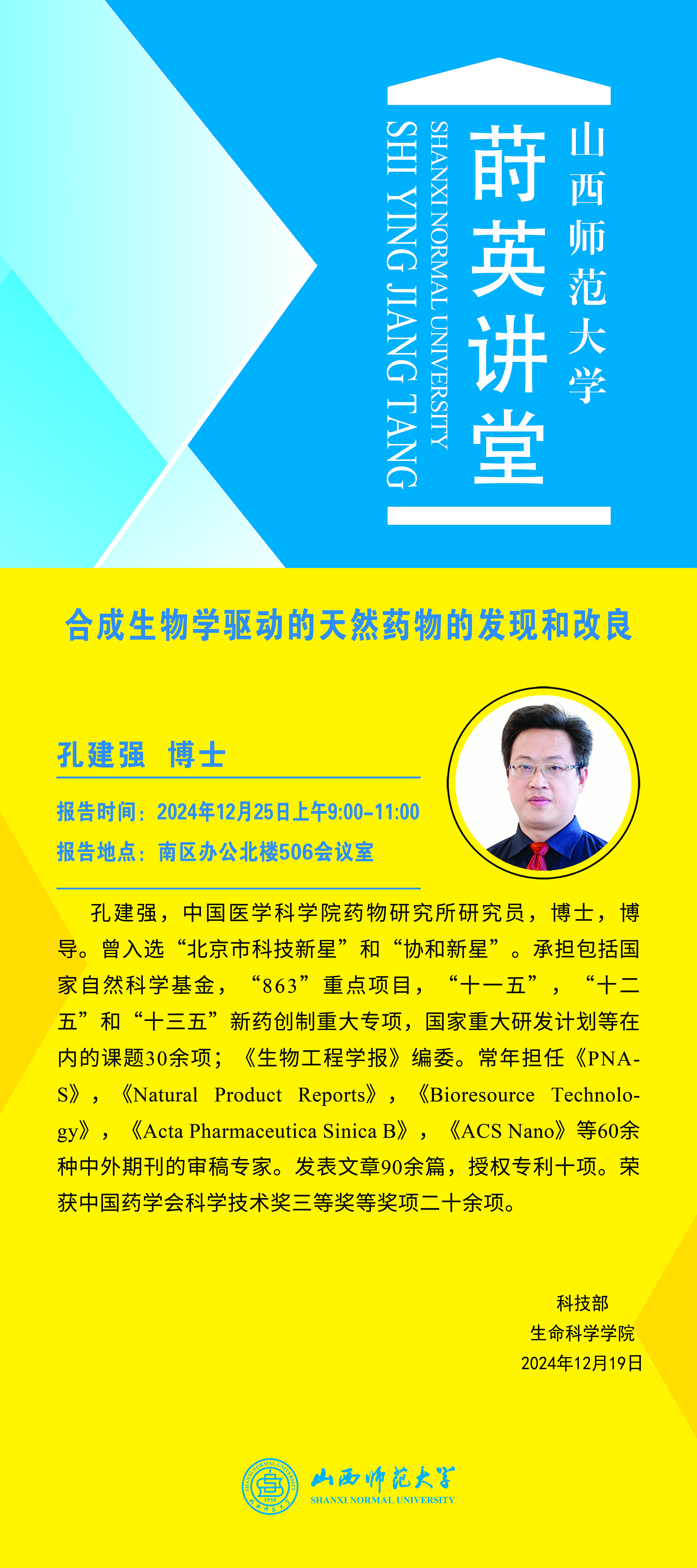 【预告】中国医学科学院药物研究所孔建强研究员应永利官网邀请作学术报告