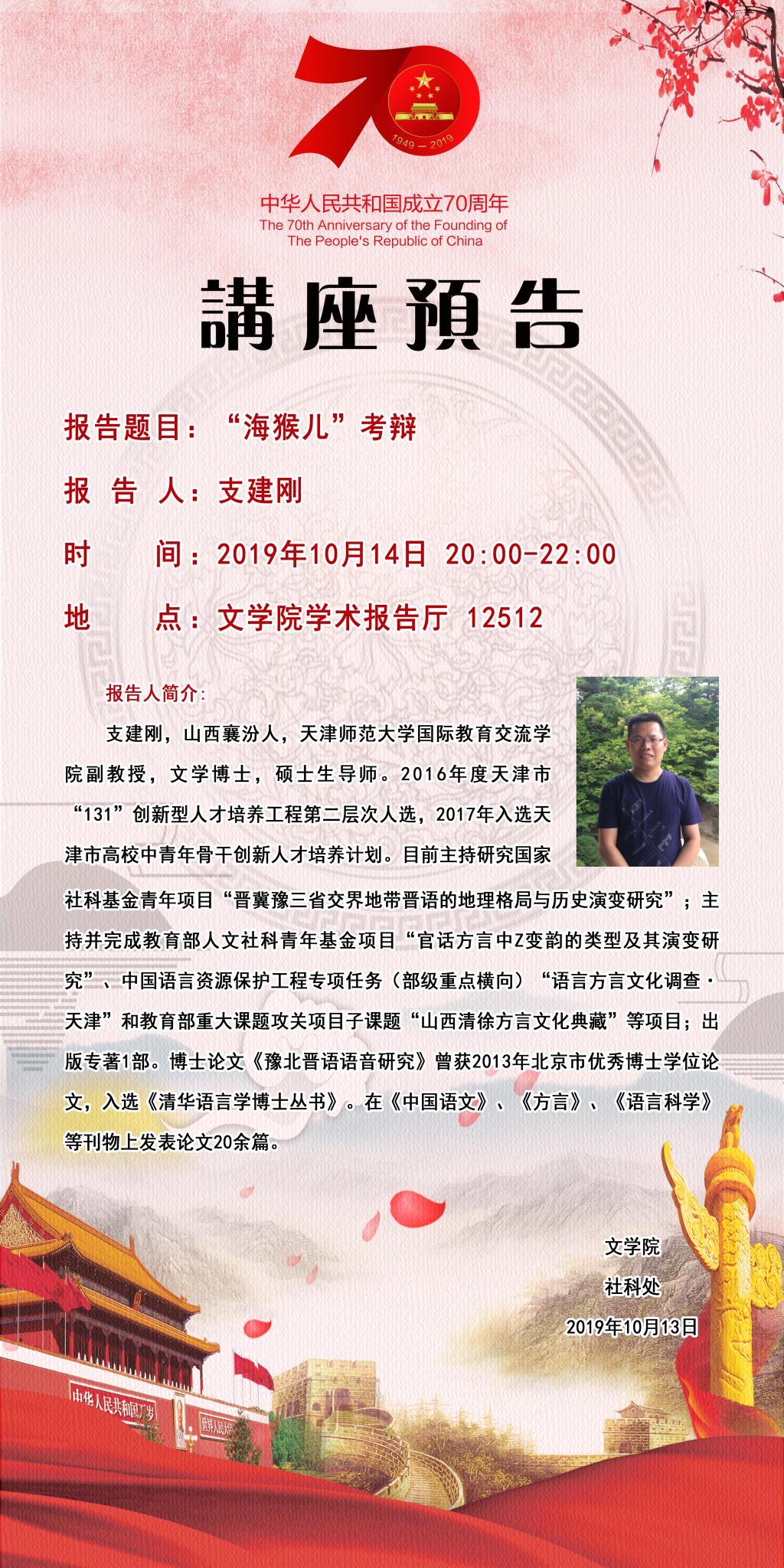 【预告】天津师范大学支建刚副教授应文学院邀请来永利官网作学术报告