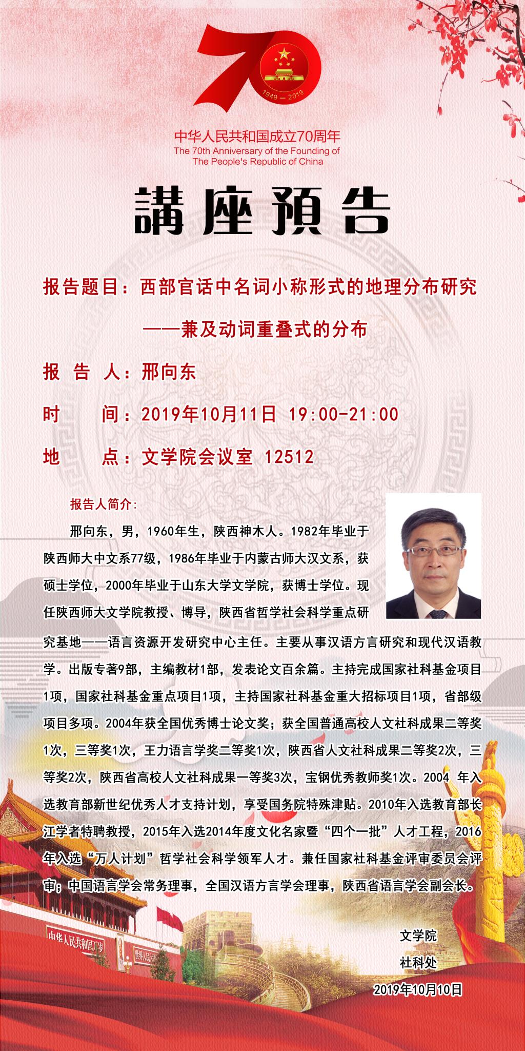 【预告】 陕西师范大学邢向东教授应文学院邀请来永利官网作学术报告