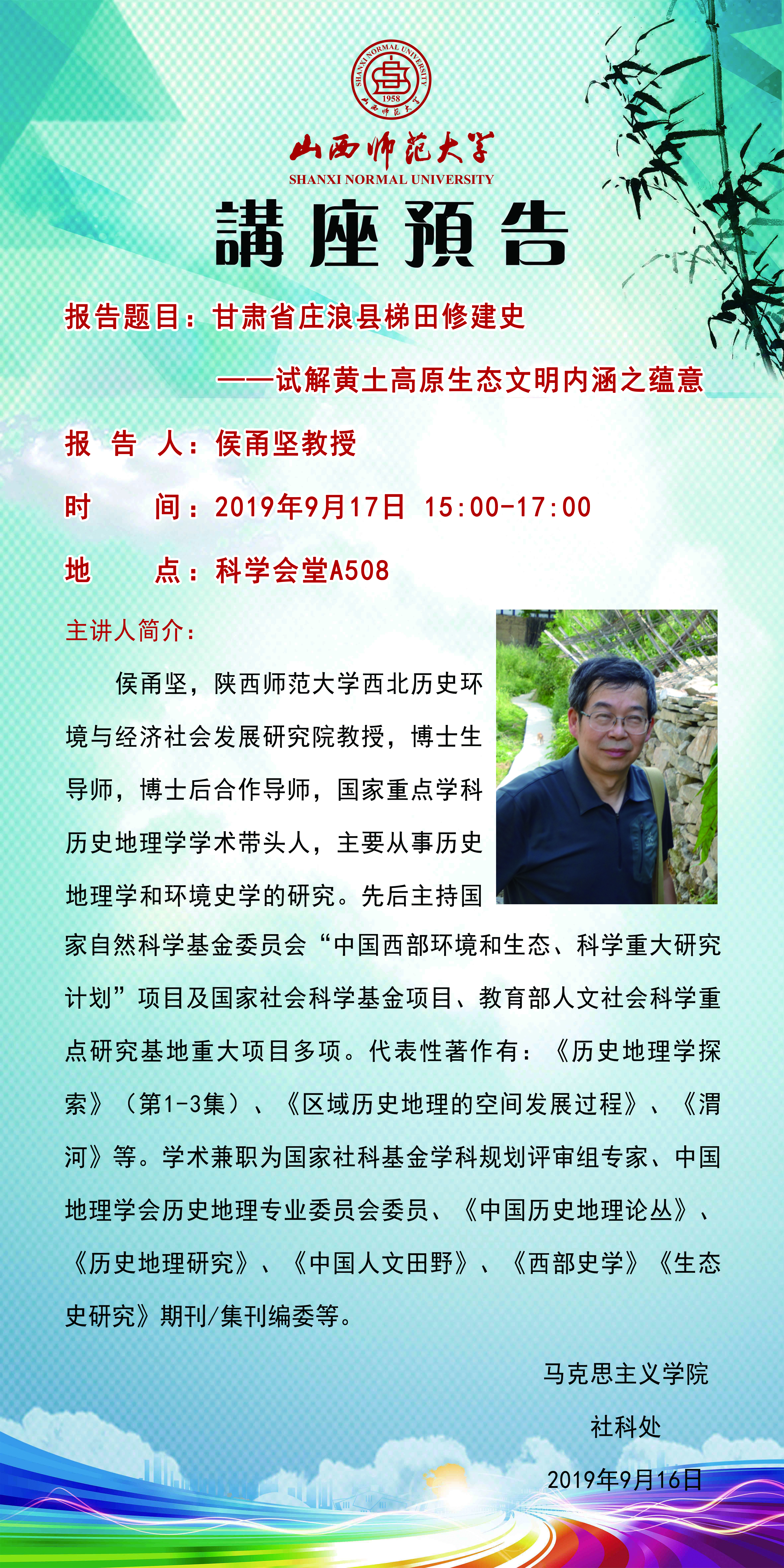 【预告】 陕西师范大学侯甬坚教授应马克思主义学院邀请来永利官网作学术报告