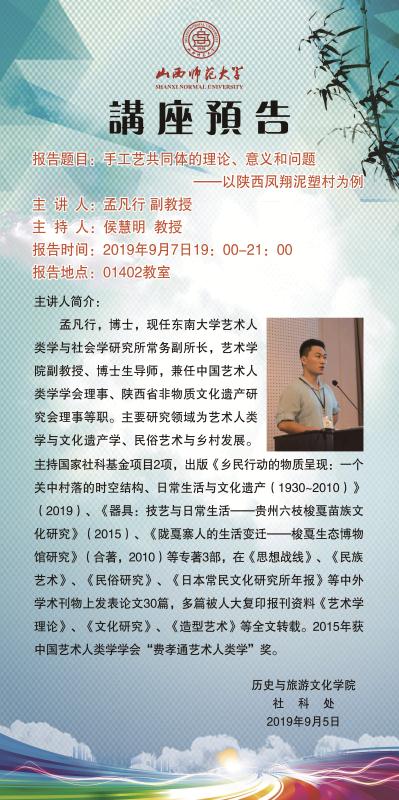 【预告】 东南大学孟凡行副教授应历史与旅游文化学院邀请来永利官网作学术报告