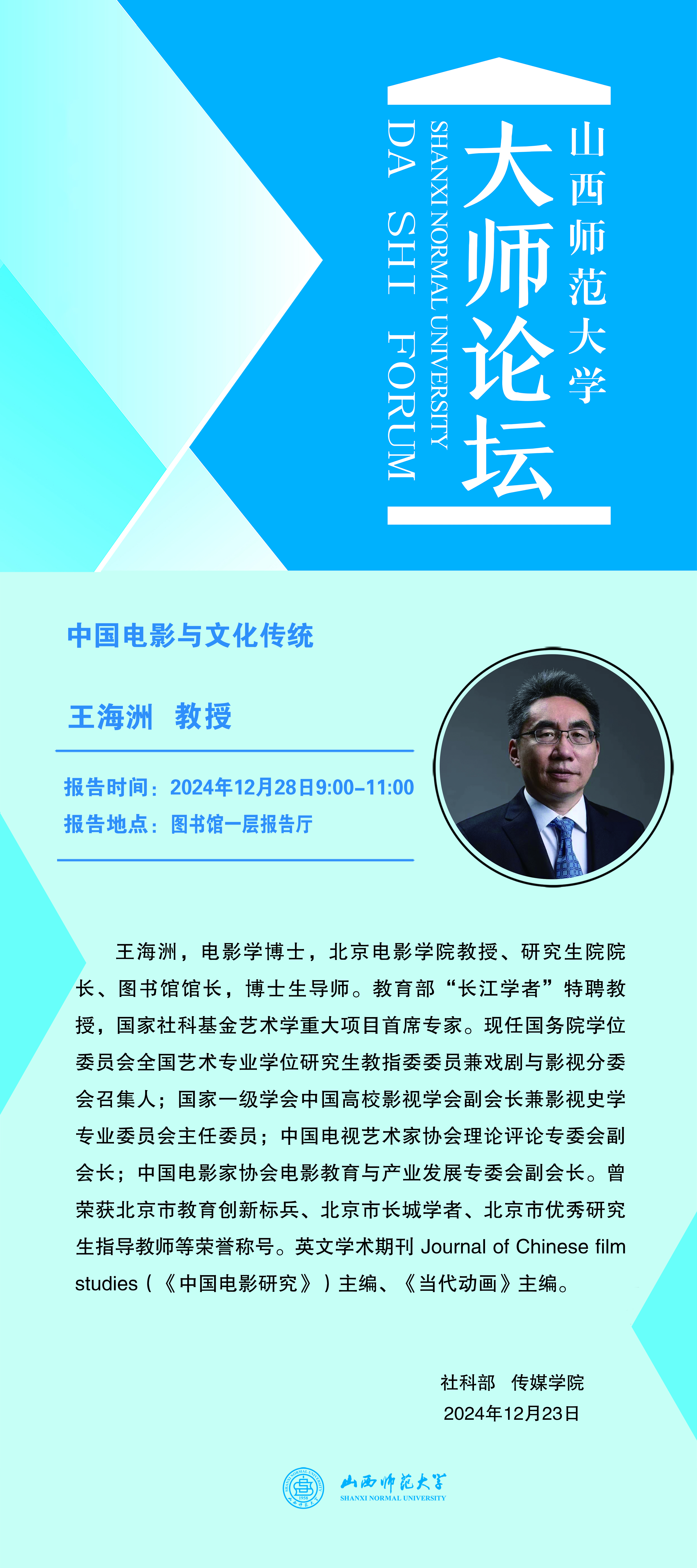 【大师论坛】北京电影学院王海洲教授应永利官网传媒学院邀请作学术报告