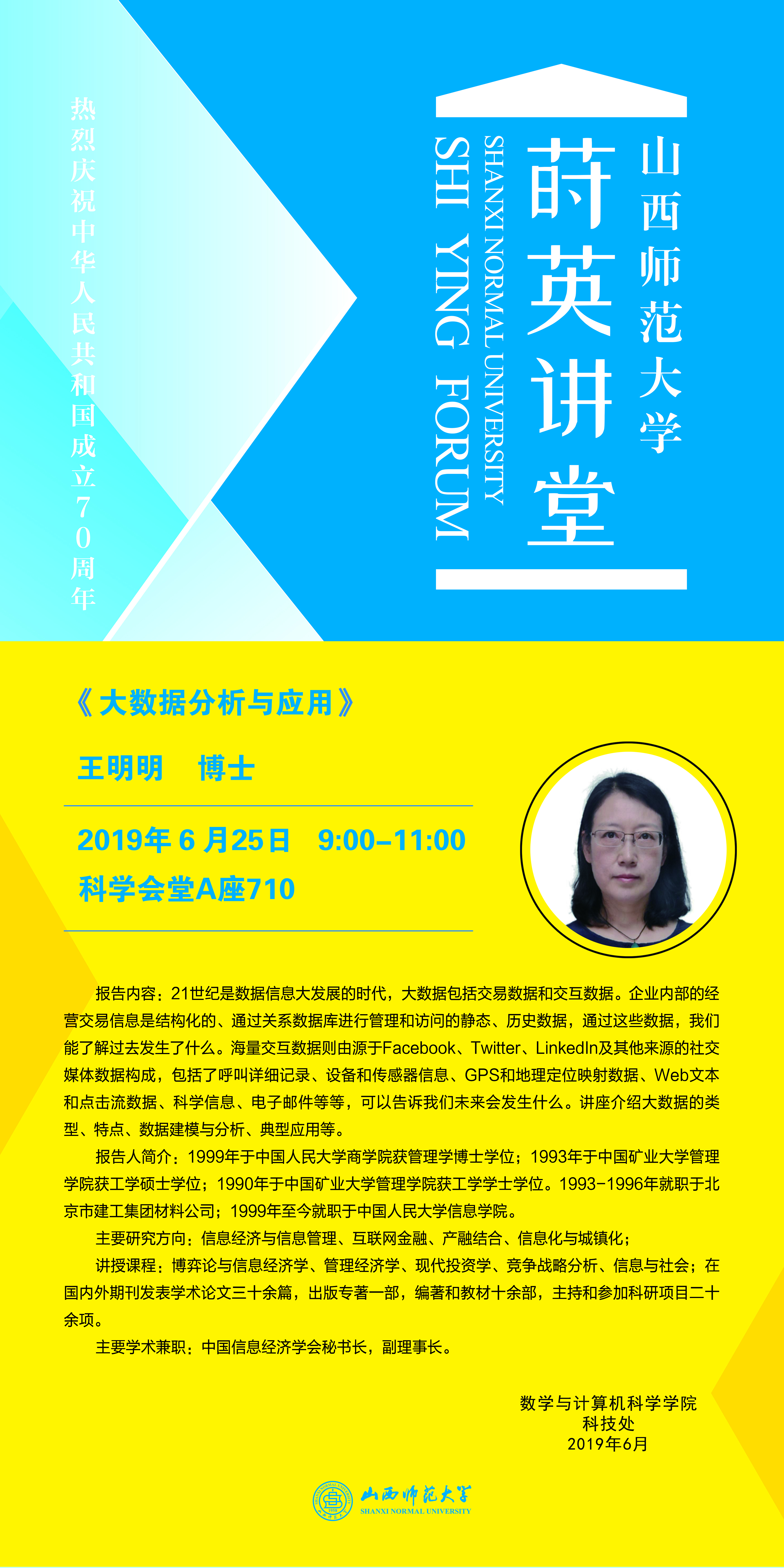 【预告】中国人民大学信息学院王明明副教授应邀来永利官网做学术报告