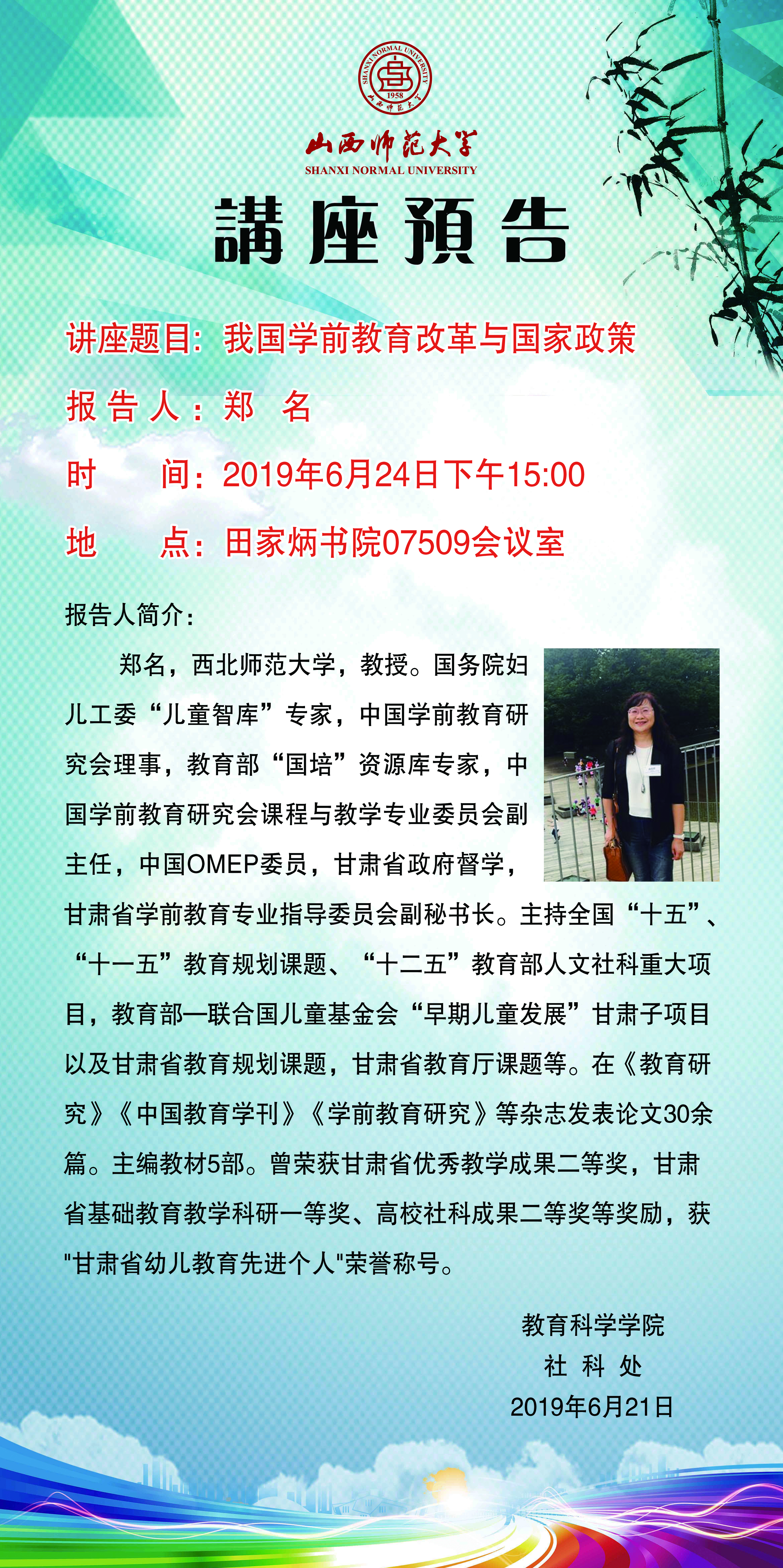 【预告】 西北师范大学郑名教授应教育科学学院邀请来永利官网作学术报告