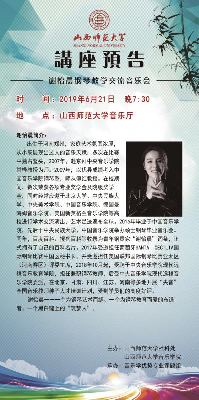 【预告】 中央音乐学院谢怡晨应音乐学院邀请来永利官网交流