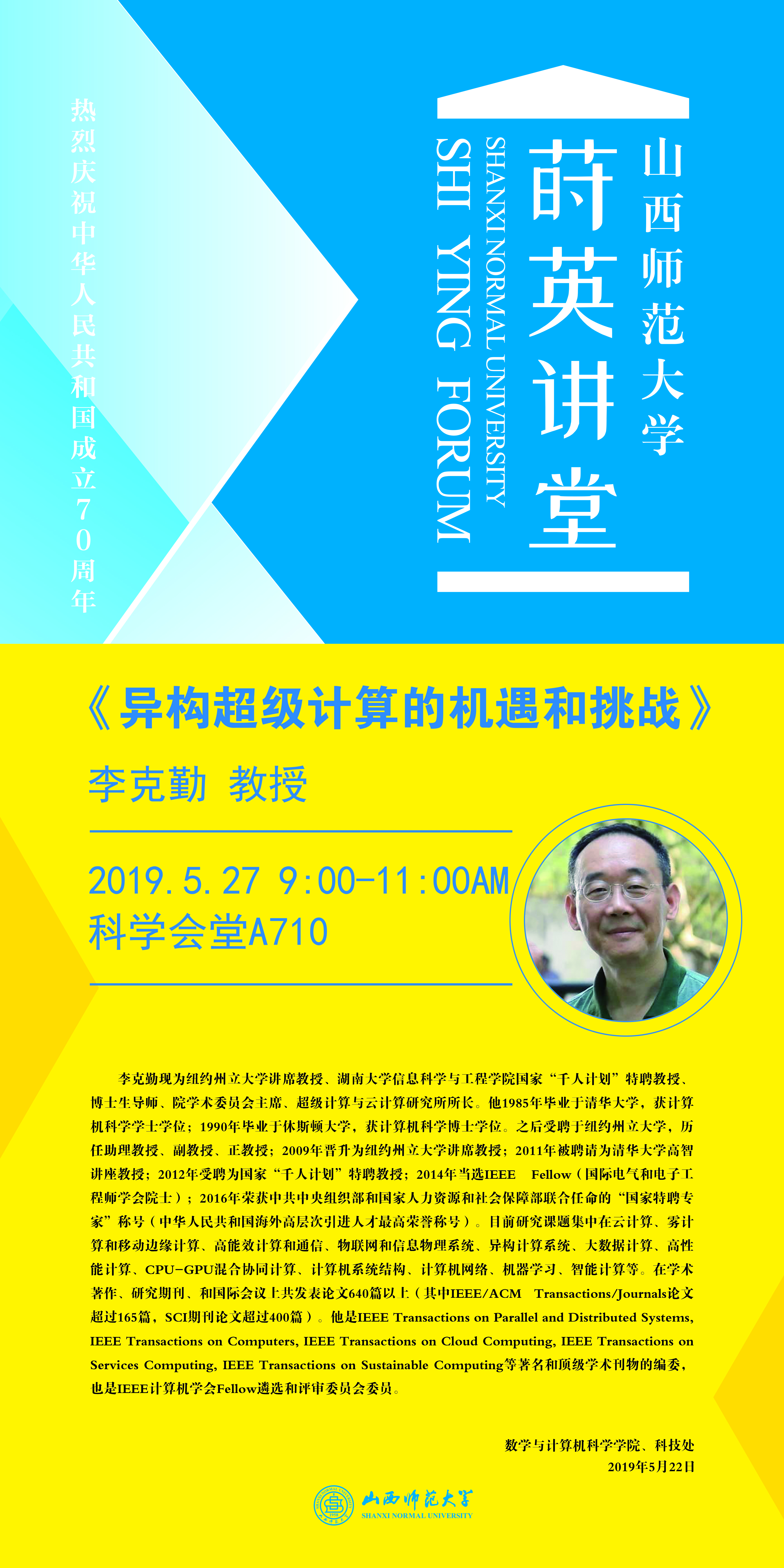 【预告】纽约州立大学李克勤讲席教授应邀来永利官网作学术报告