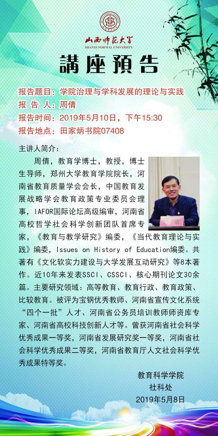 【预告】 郑州大学周倩教授应教育科学学院邀请来永利官网作学术报告