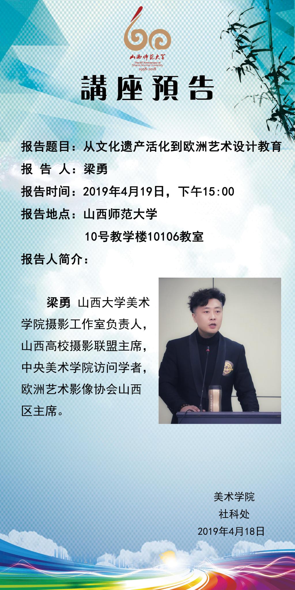 【预告】 山西大学美术学院梁勇老师应美术学院邀请来永利官网作学术报告