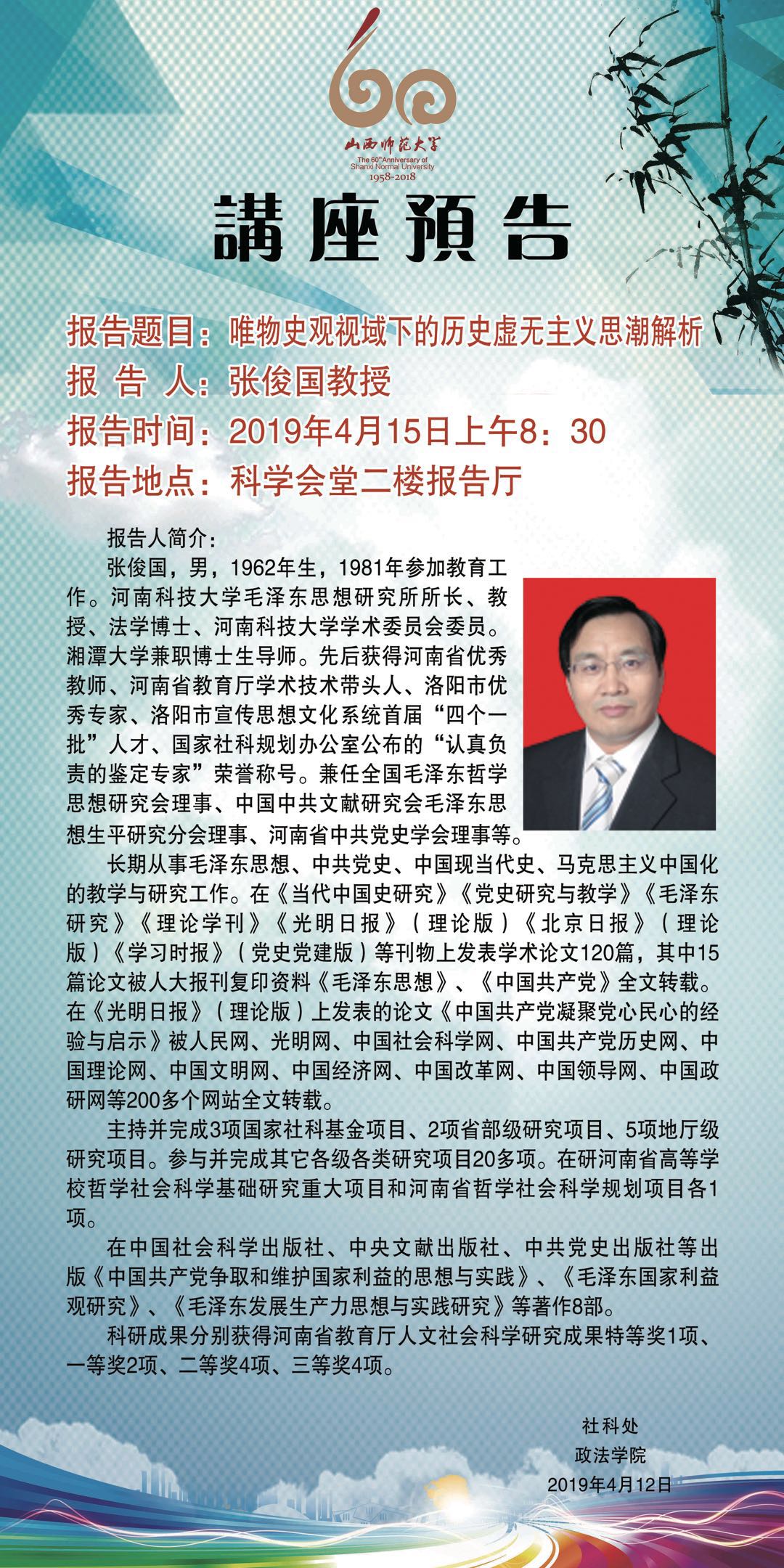 【预告】 河南科技大学张俊国教授应政法学院邀请来永利官网作学术报告