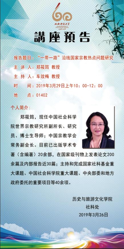 【预告】 中国社会科学院世界宗教研究所副所长郑筱筠教授应历史学院邀请来永利官网作学术报告