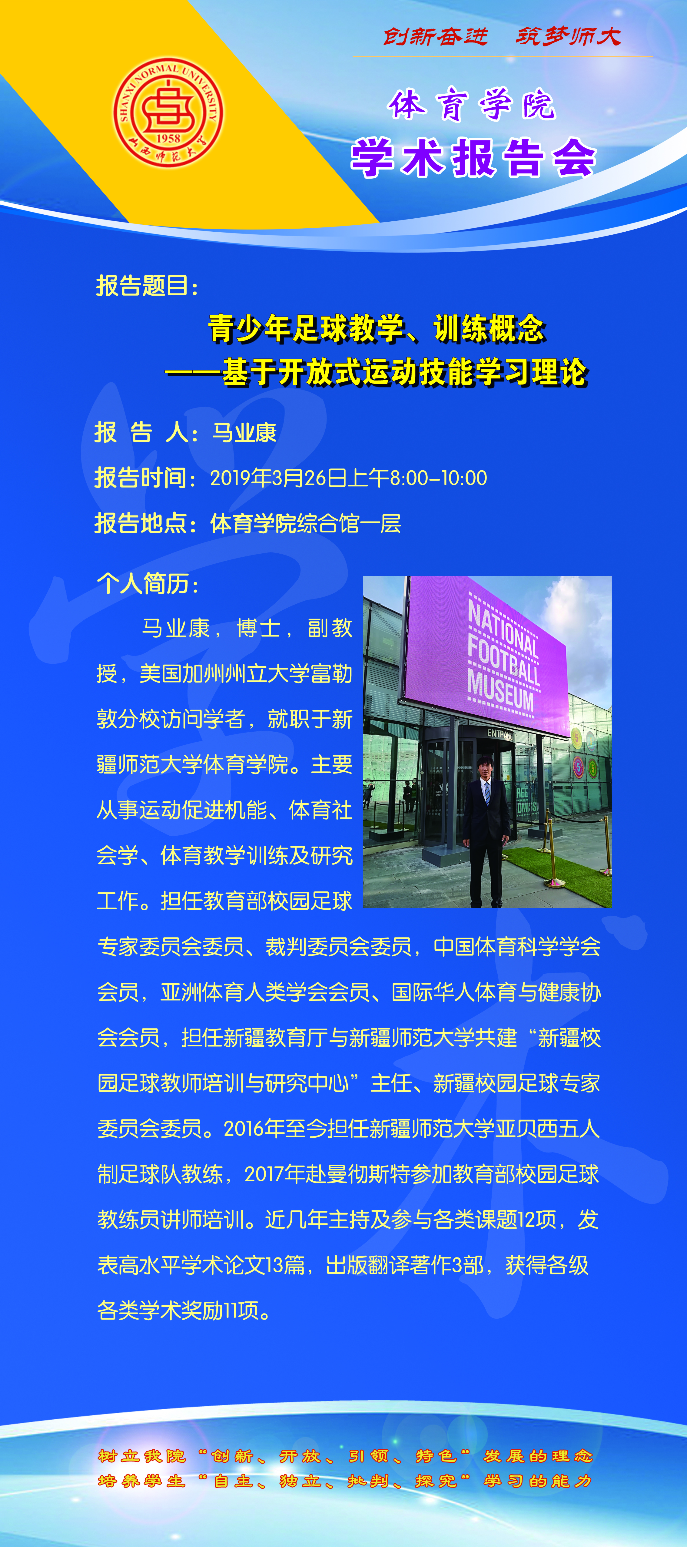 【预告】 新疆师范大学马业康博士应体育学院邀请来永利官网作学术报告