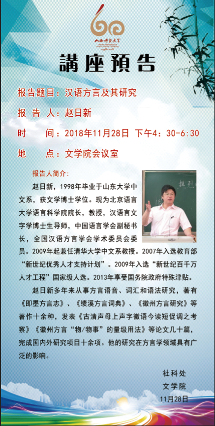 【预告】北京语言大学赵日新教授应文学院邀请来永利官网作学术报告