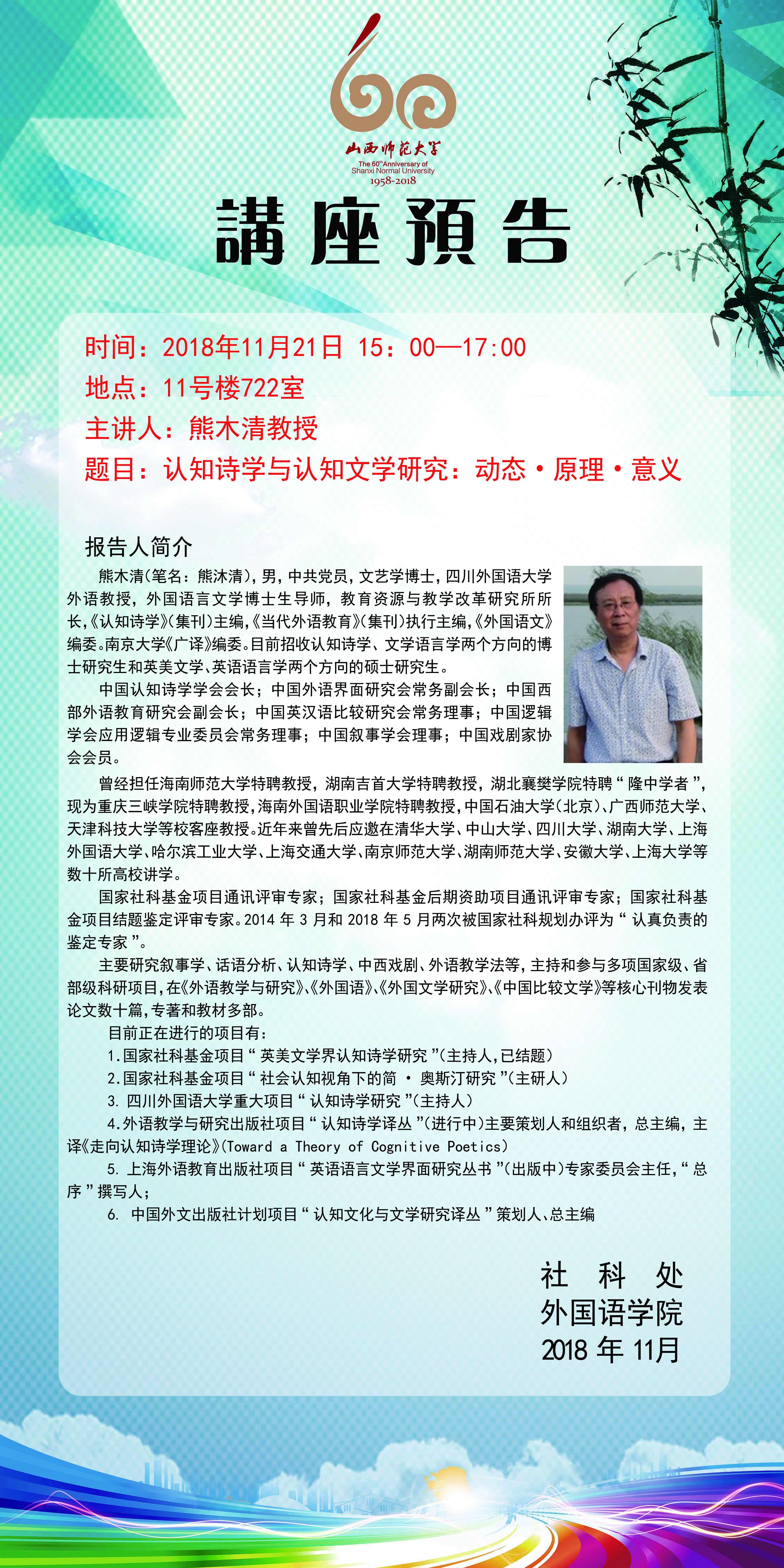 【预告】四川外国语大学熊木清教授应外国语学院邀请来永利官网作学术报告