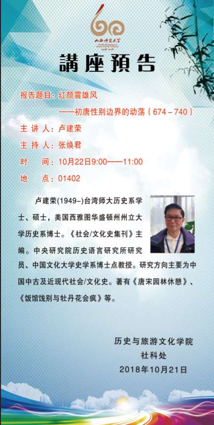 【预告】台湾师范大学卢建荣教授应历史与旅游文化学院邀请来永利官网作学术报告