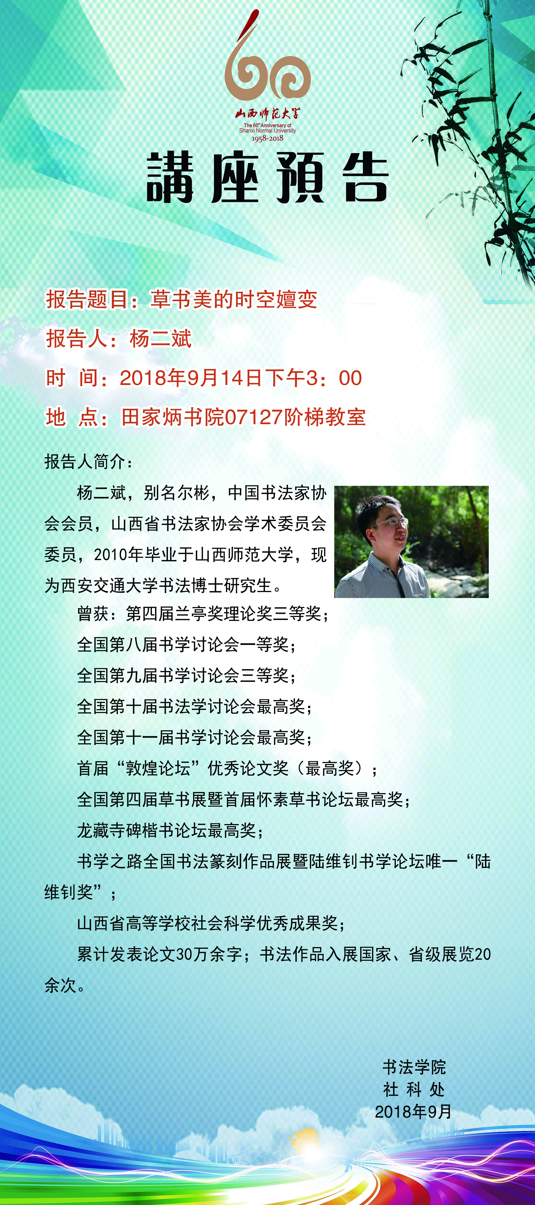 【预告】书法学院优秀毕业生杨二斌博士应邀来永利官网作学术报告