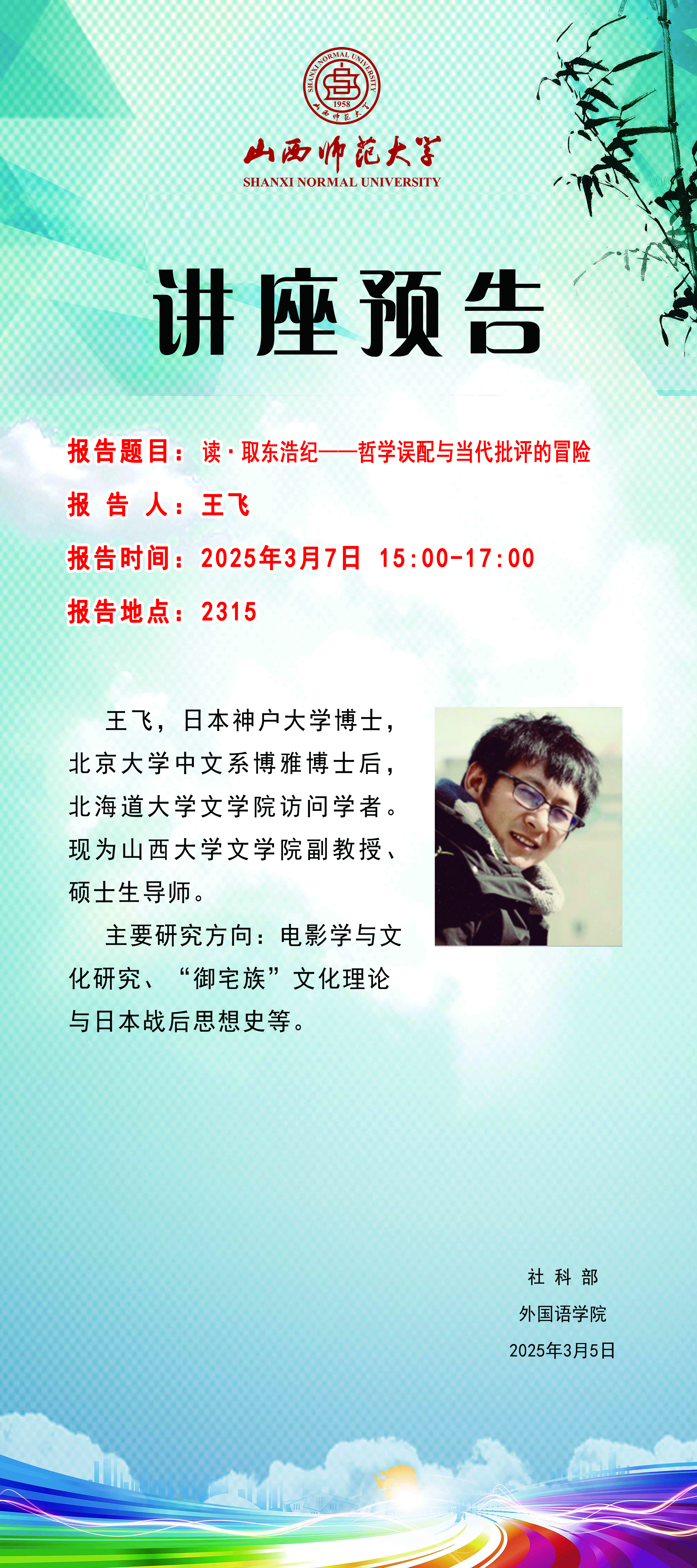 【预告】山西大学王飞副教授应外国语学院邀请作学术报告