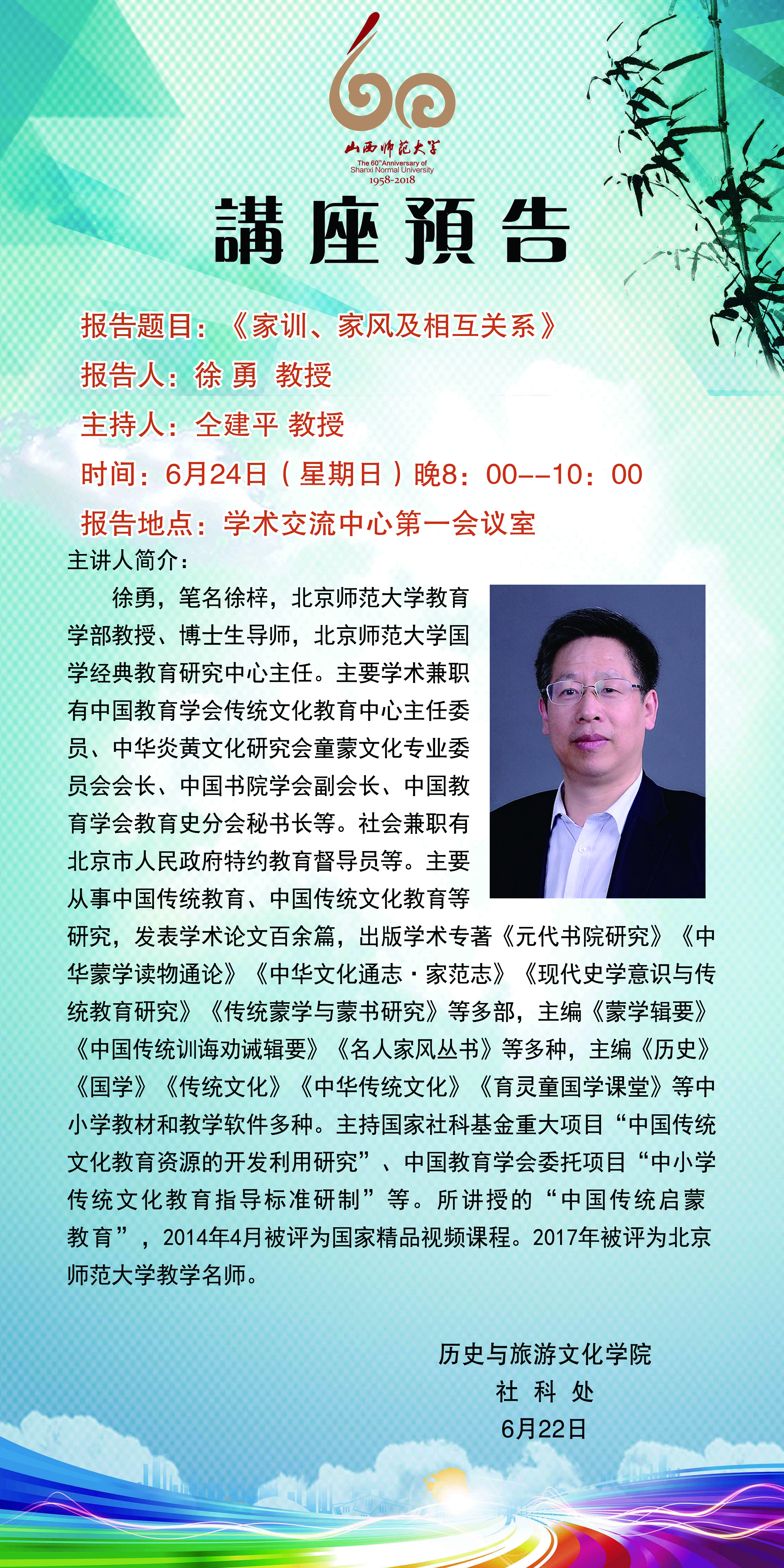 【预告】北京师范大学教育学院徐勇教授应《弟子规》与传统美德研究中心邀请来永利官网作学术报告