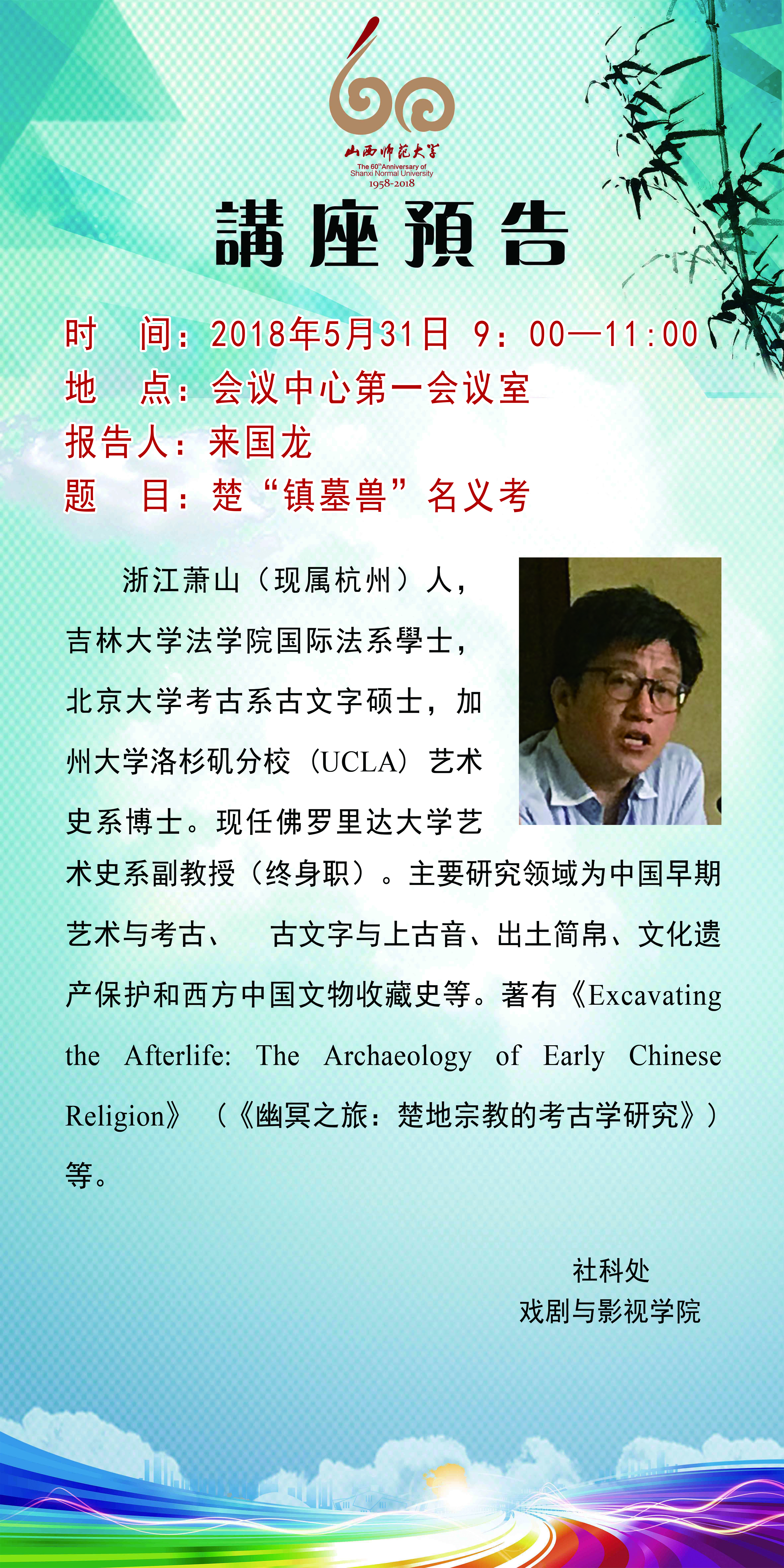 【预告】佛罗里达大学艺术史系来国龙副教授应戏剧与影视学院邀请来永利官网作学术报告