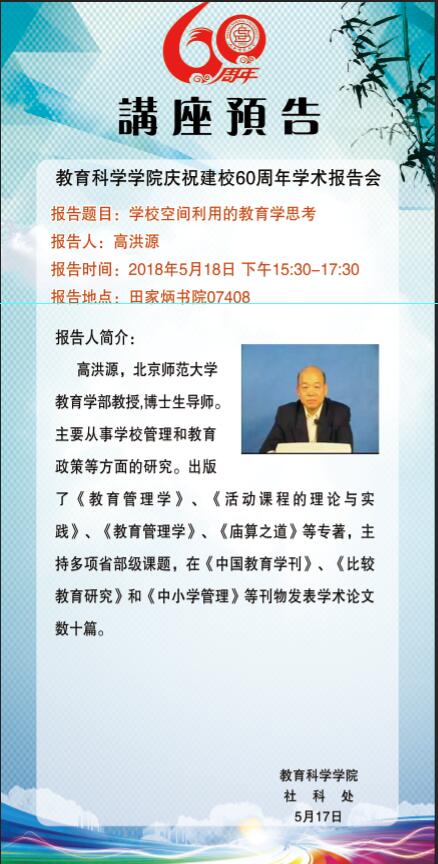 【预告】北京师范大学教育学部高洪源教授应教育科学学院邀请来永利官网作学术报告