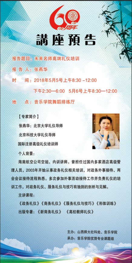 【预告】北京大学礼仪导师张燕华应音乐学院邀请来永利官网作学术报告