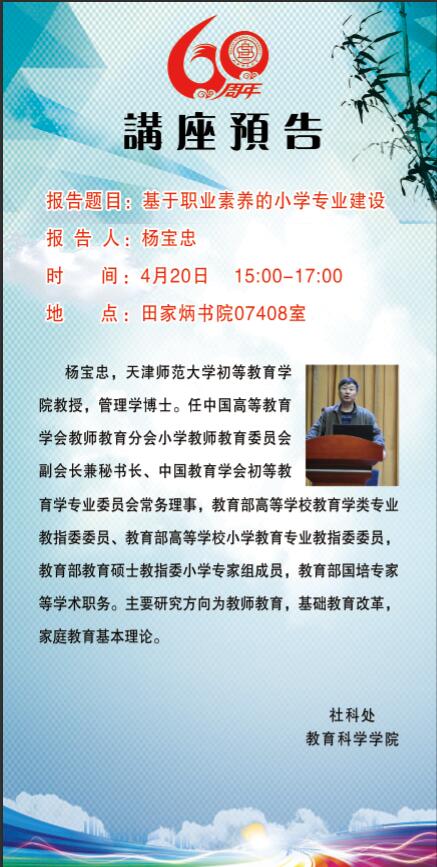 【预告】天津师范大学杨宝忠教授应教育科学学院邀请来永利官网作学术报告