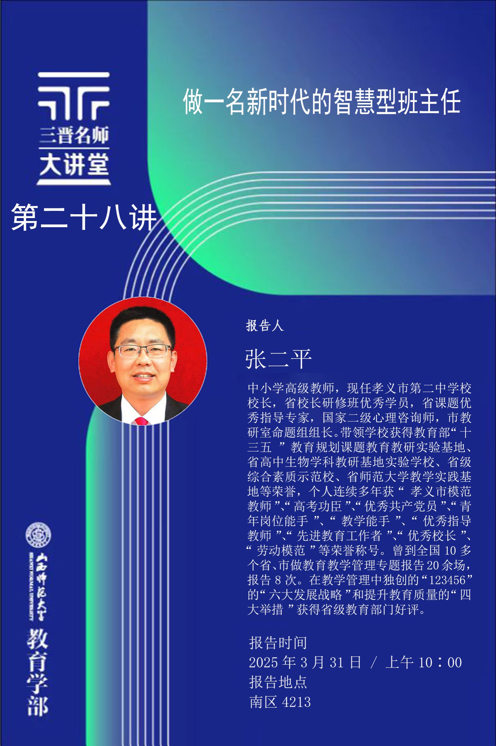 【预告】孝义市第二中学校长张二平应教育学部邀请作学术报告