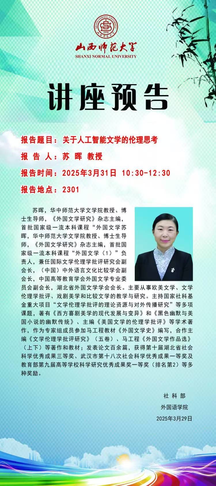 【预告】华中师范大学苏晖教授应外国语学院邀请作学术报告