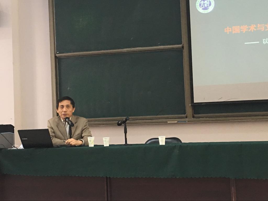 报告会上,关爱和教授从“严复、梁启超、王国维三人的学术背景、学术经历和学术成就”三个方面对我国当代学术思想的确立与我国当代文学发展做了详细的阐述。关爱和以甲午中日战争中清政府的惨败为切入点,分析了中国的政治、思想和文化超越“器物革命”到“政治革命”最后进入“思想革命”的发展过程。他指出了严复、梁启超、王国维三人对中国学术思想的奠基作用,同时特别指出梁启超、王国维在“文学之变”中所起到的积极作用。最后关爱和教授总结了梁启超、王国维在文学方面的贡献在于把文学与国家,民众的关联提高到空前的地位和小说、词曲被纳入文学的殿堂、创作方法的区分等方面。并结合当代文学的现状,对十九、二十世纪之交的学术思想和文学创作对当代文学的深刻影响作了分析讲解。