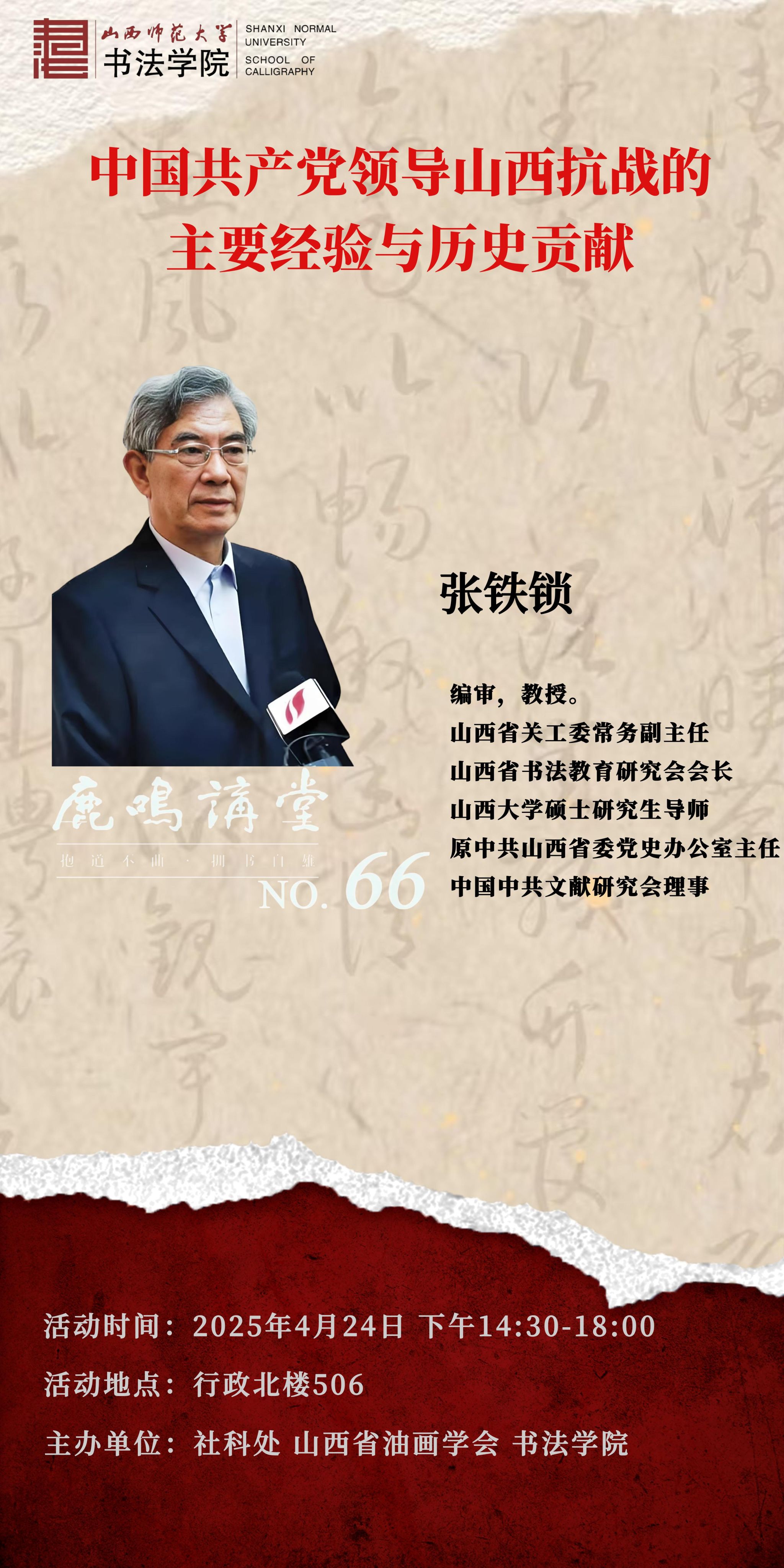 【预告】原中共山西省委党史办公室主任张铁锁应书法学院邀请作学术报告