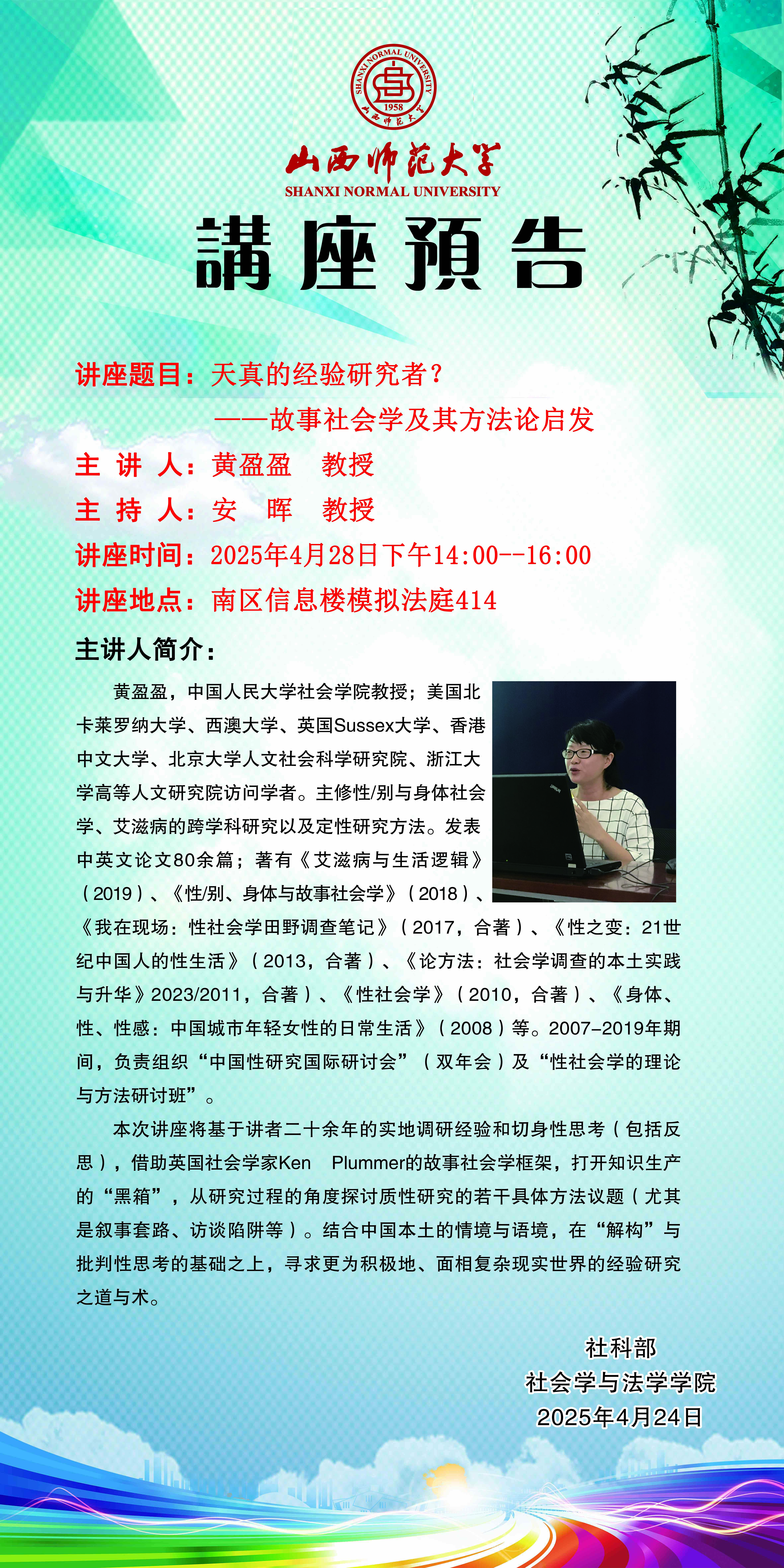【预告】中国人民大学黄盈盈教授应永利官网社会学与法学学院邀请作学术报告