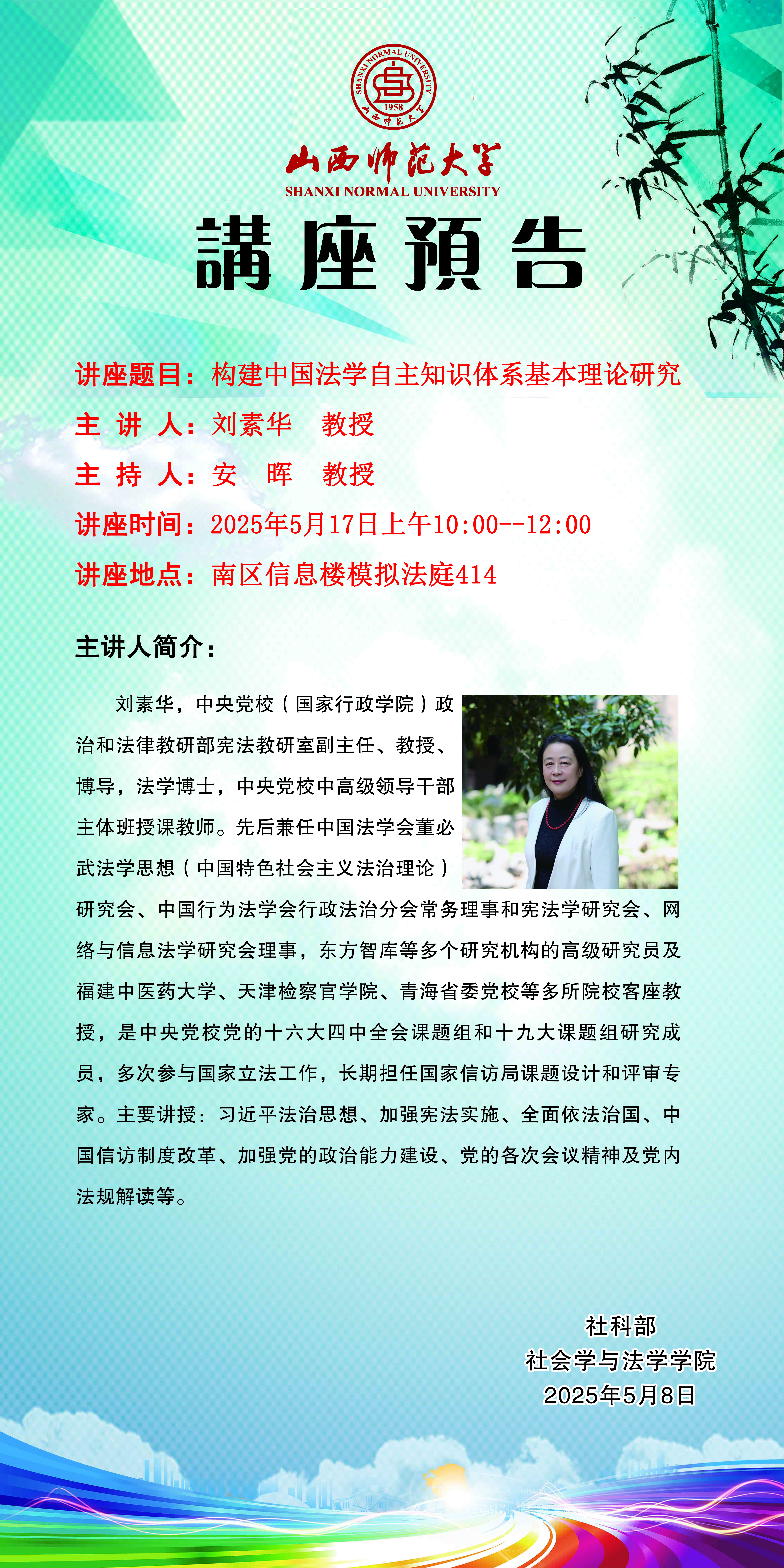 【预告】中央党校政治和法律教研部刘素华教授应永利官网社会学与法学学院邀请作学术报告