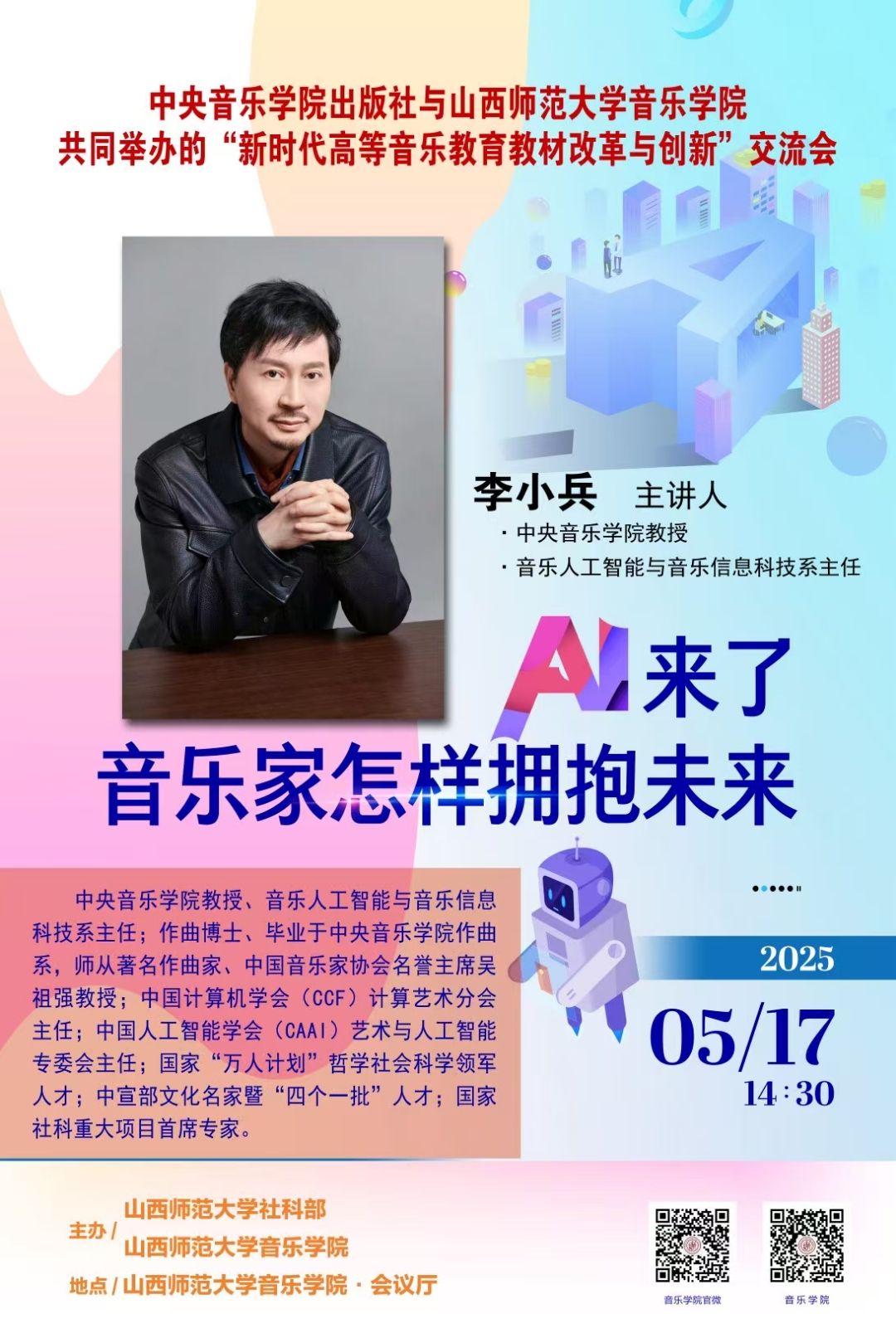 【预告】中央音乐学院李小兵教授应音乐学院邀请作学术报告