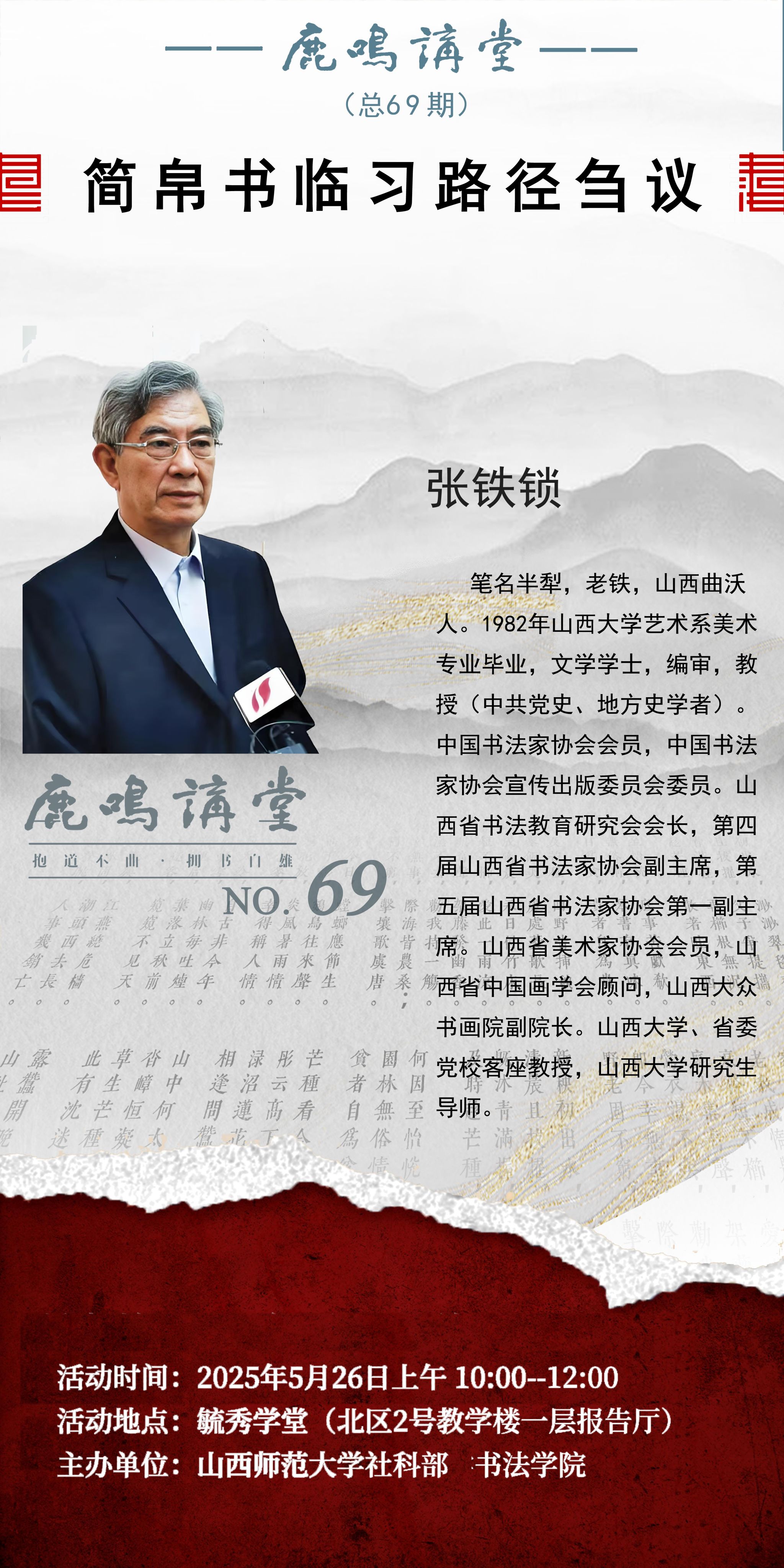 【预告】山西省书法教育研究会会长张铁锁教授应书法学院邀请做学术报告