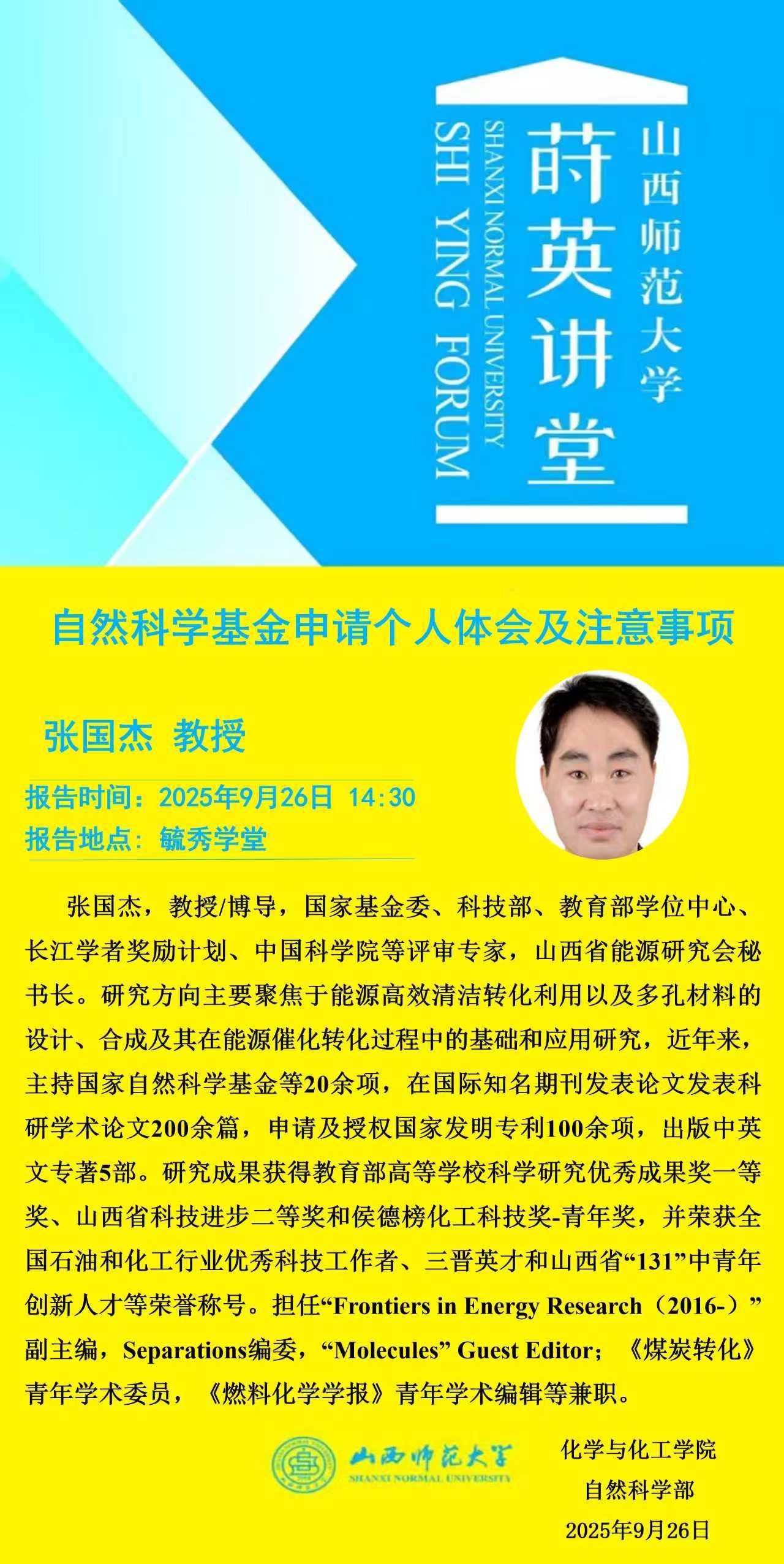 【预告】山西省能源研究会张国杰教授应永利官网邀请作学术报告
