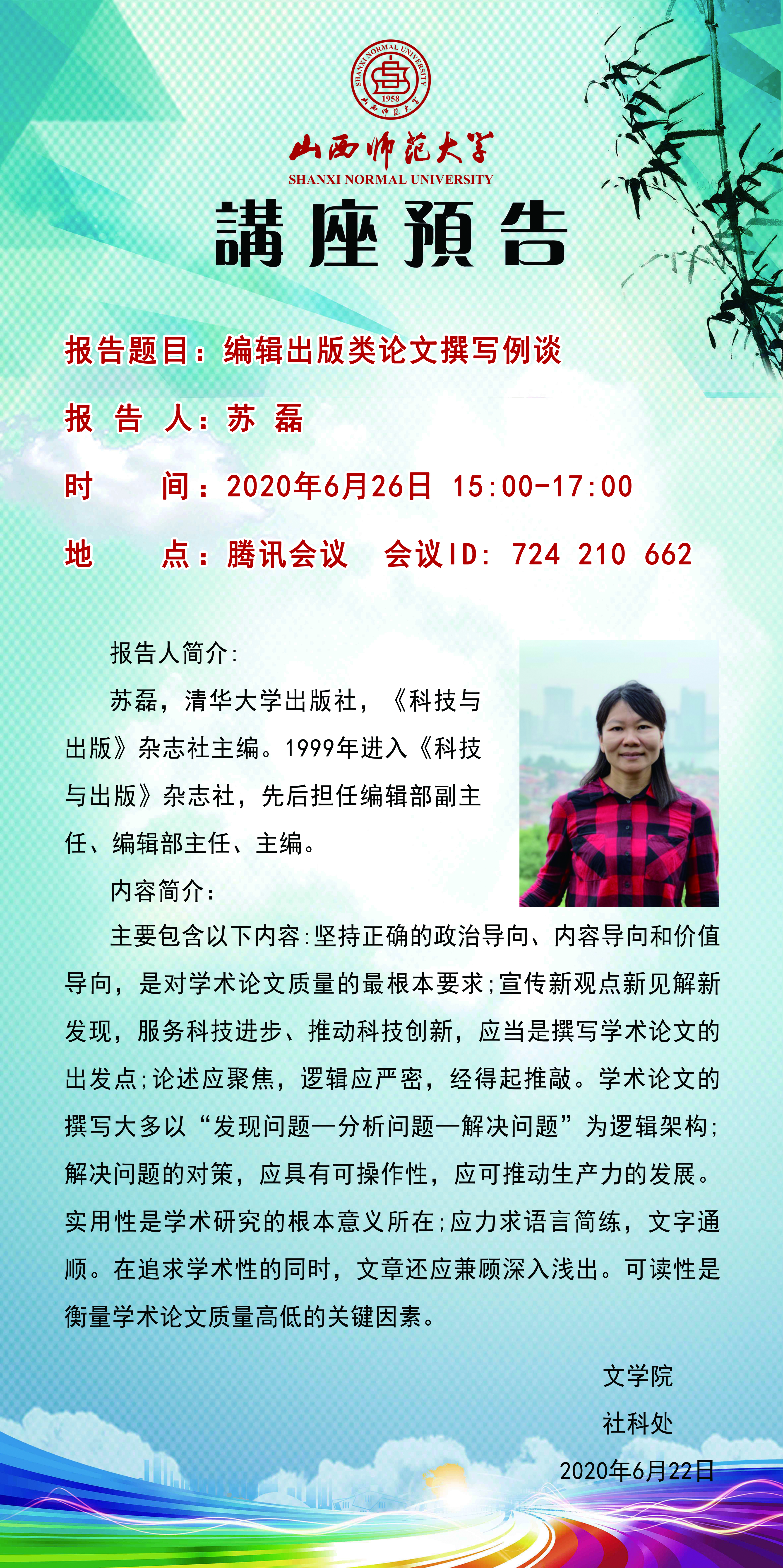 【预告】清华大学出版社《科技与出版》杂志苏磊主编应文学院邀请举办视频直播讲座