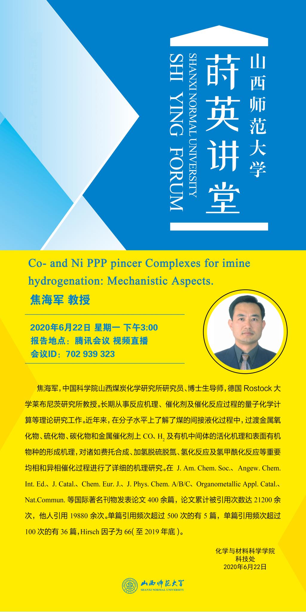 【预告】 中国科学院山西煤炭化学研究所焦海军研究员应邀来永利官网作学术报告