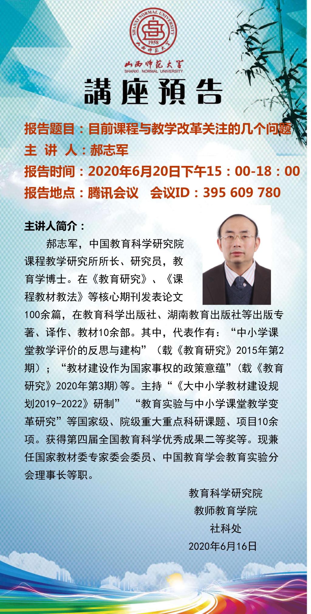 【预告】 中国教育科学研究院课程研究所所长郝志军应教育科学研究院邀请举办视频直播讲座