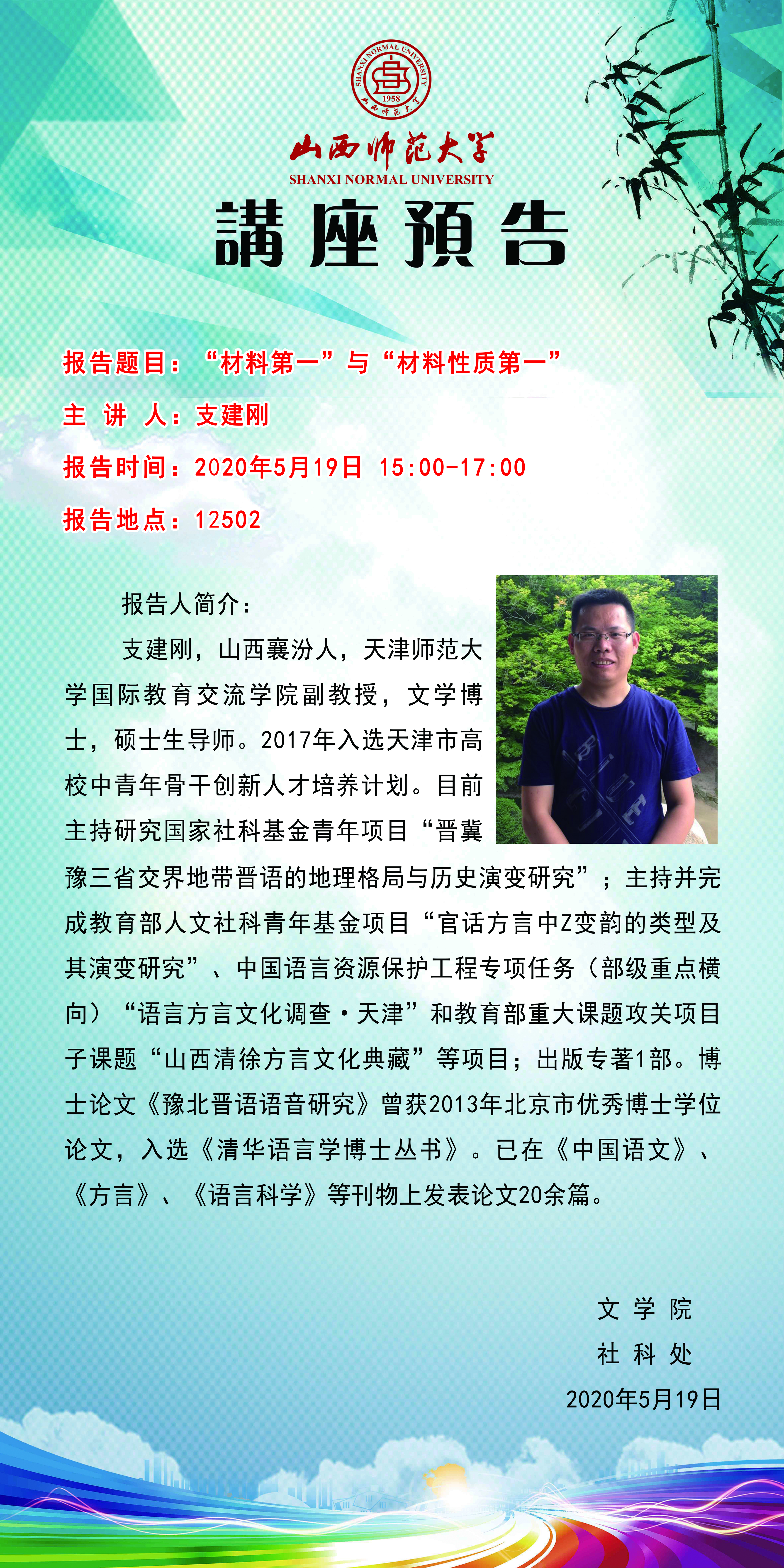 【预告】 天津师范大学支建刚教授应文学院邀请来永利官网作学术报告