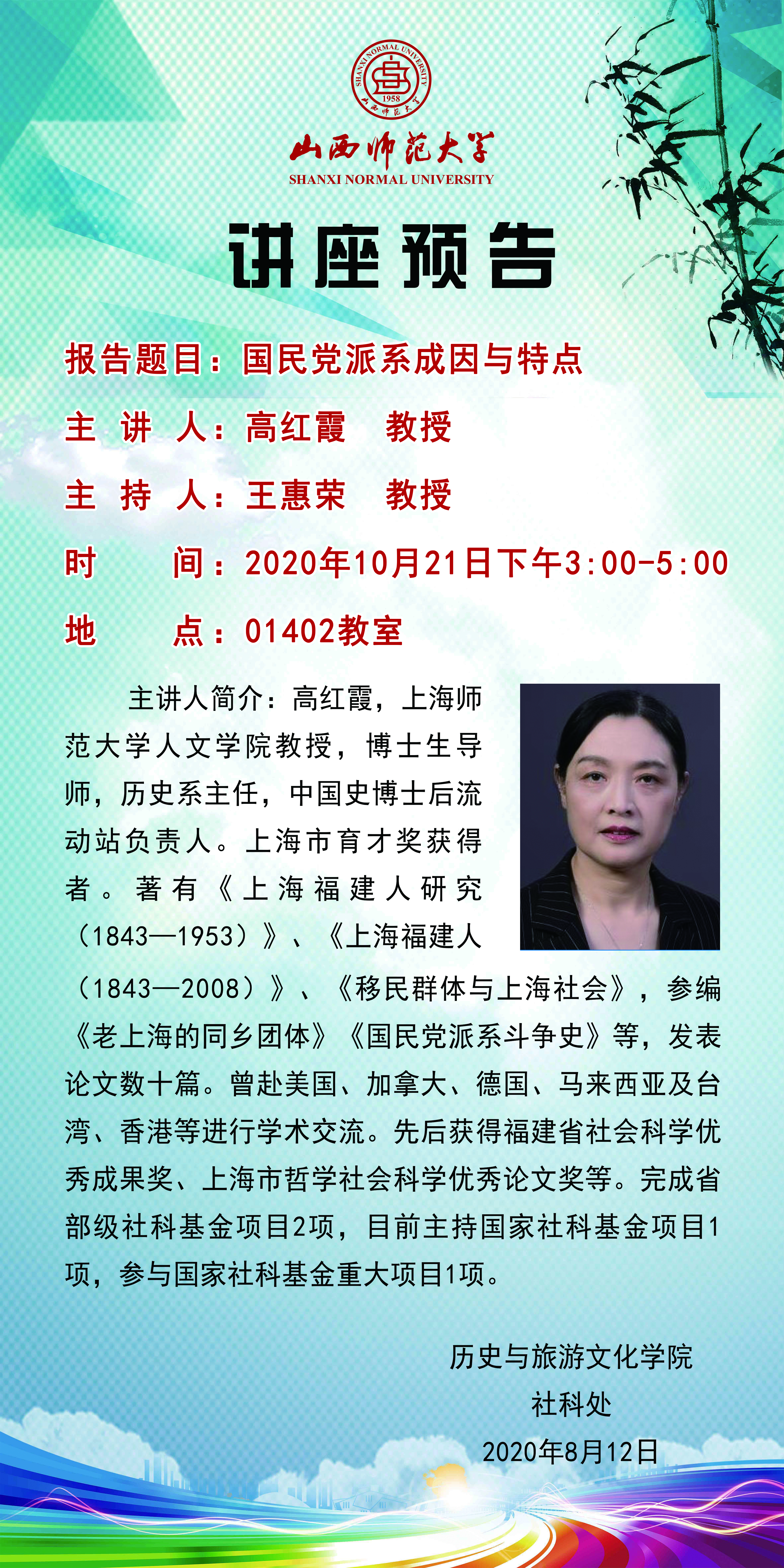 【预告】 上海师范大学高红霞教授应历史与旅游文化学院邀请来永利官网作学术报告