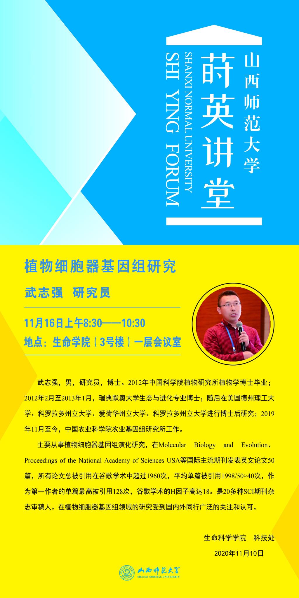 【预告】中国农业科学院武志强研究员应邀来永利官网作学术报告