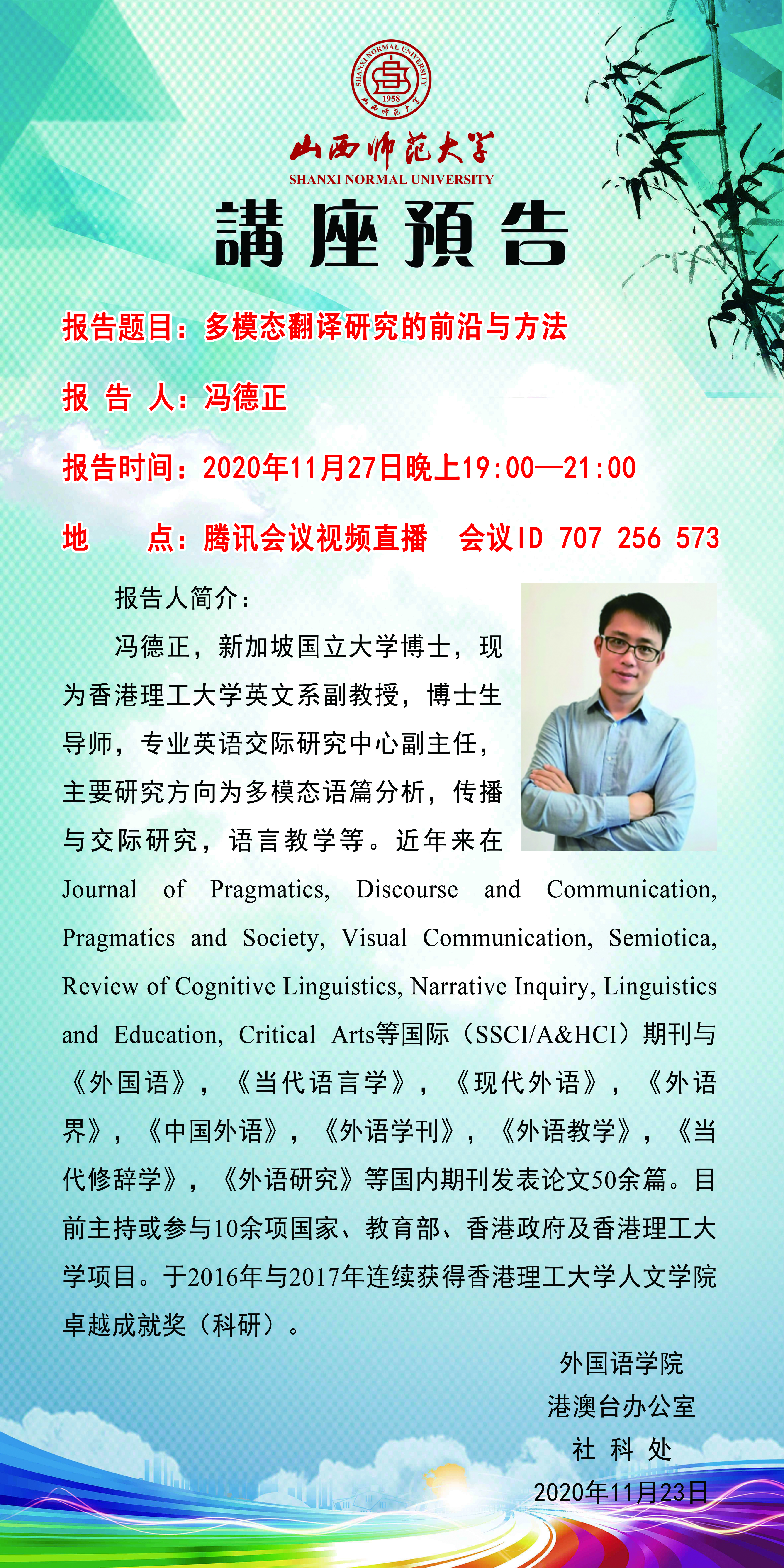 【预告】 香港理工大学冯德正教授应外国语学院邀请作线上学术报告