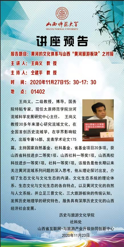 【预告】 太原师范学院王尚义教授应历史与旅游文化学院邀请来永利官网作学术报告