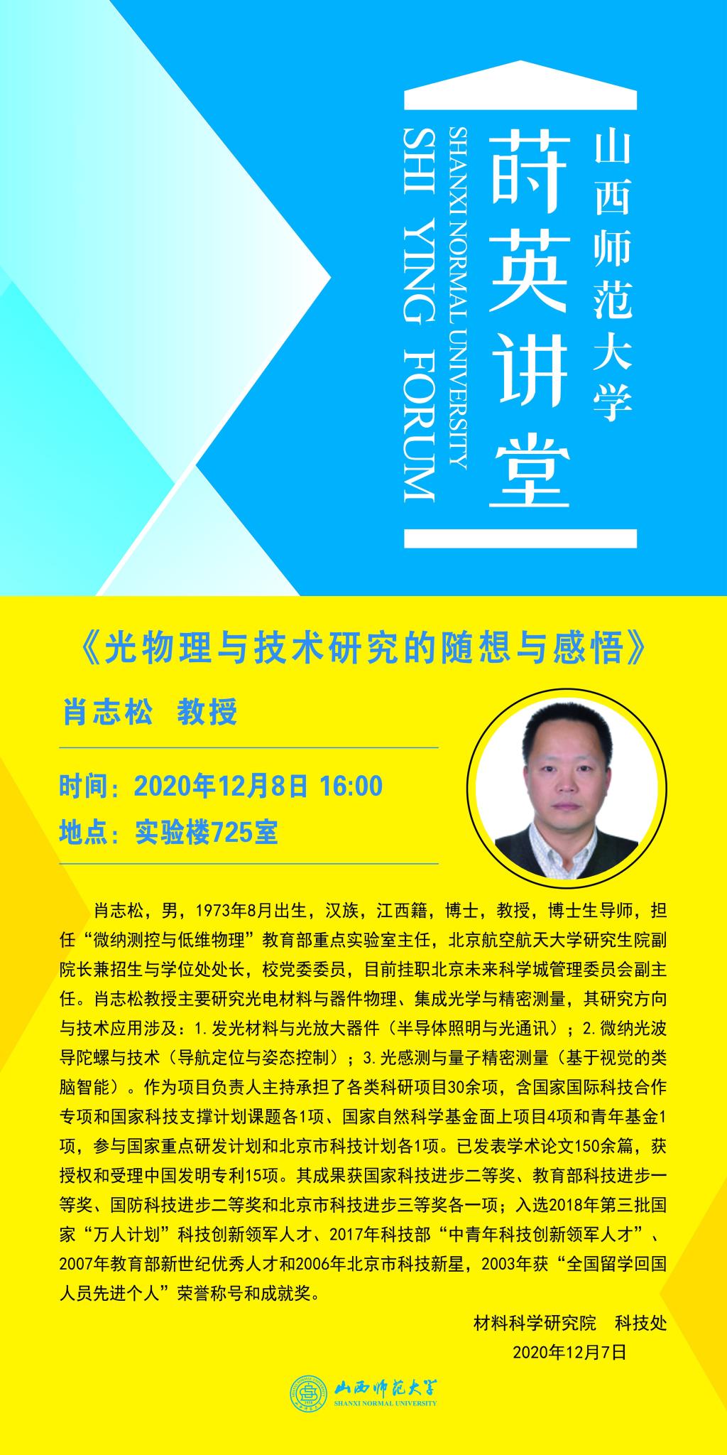 【预告】北京航空航天大学肖志松教授应邀来永利官网作学术报告
